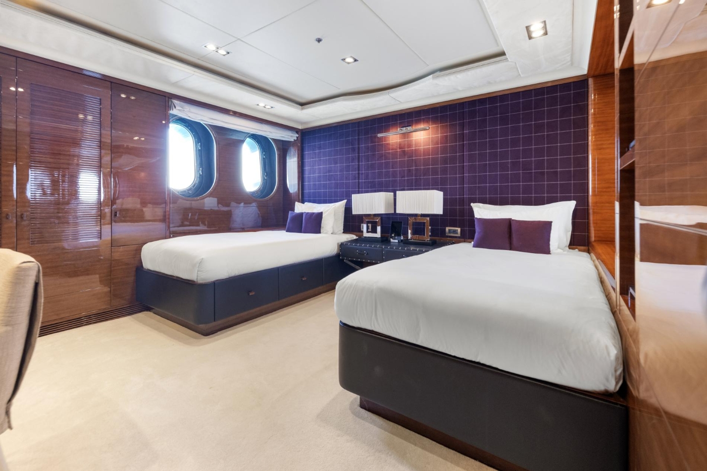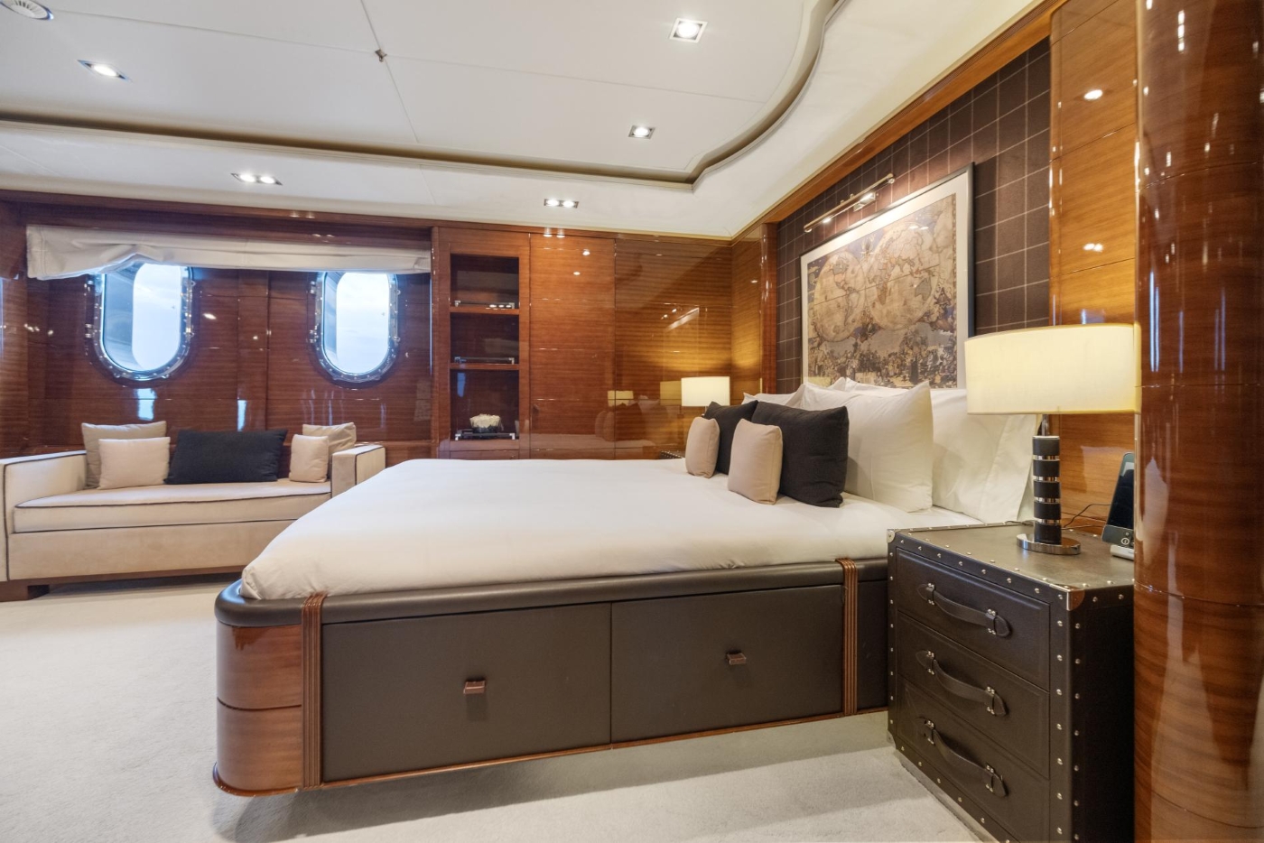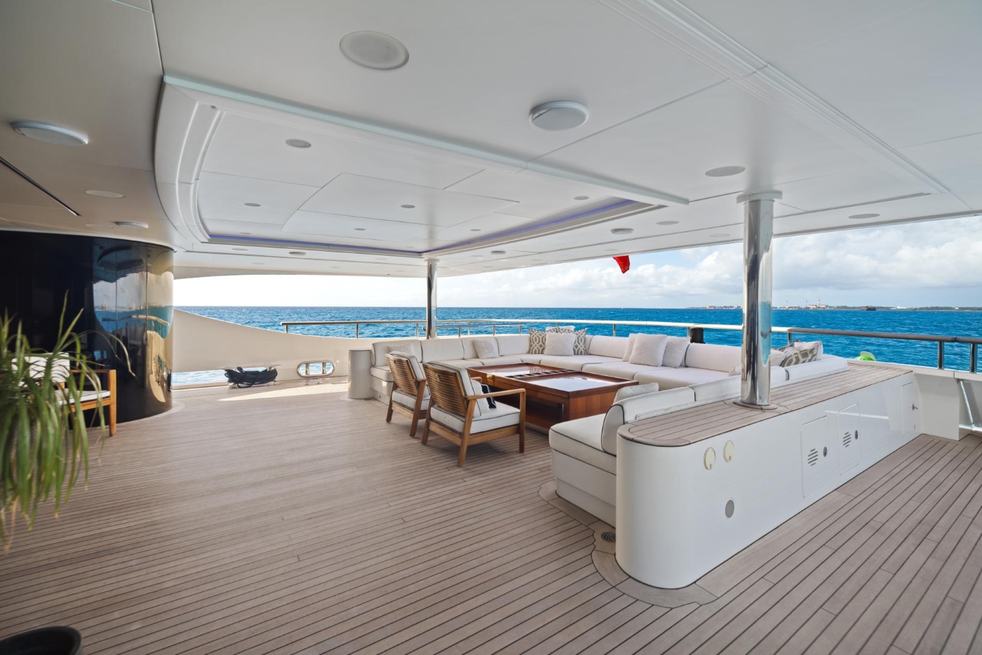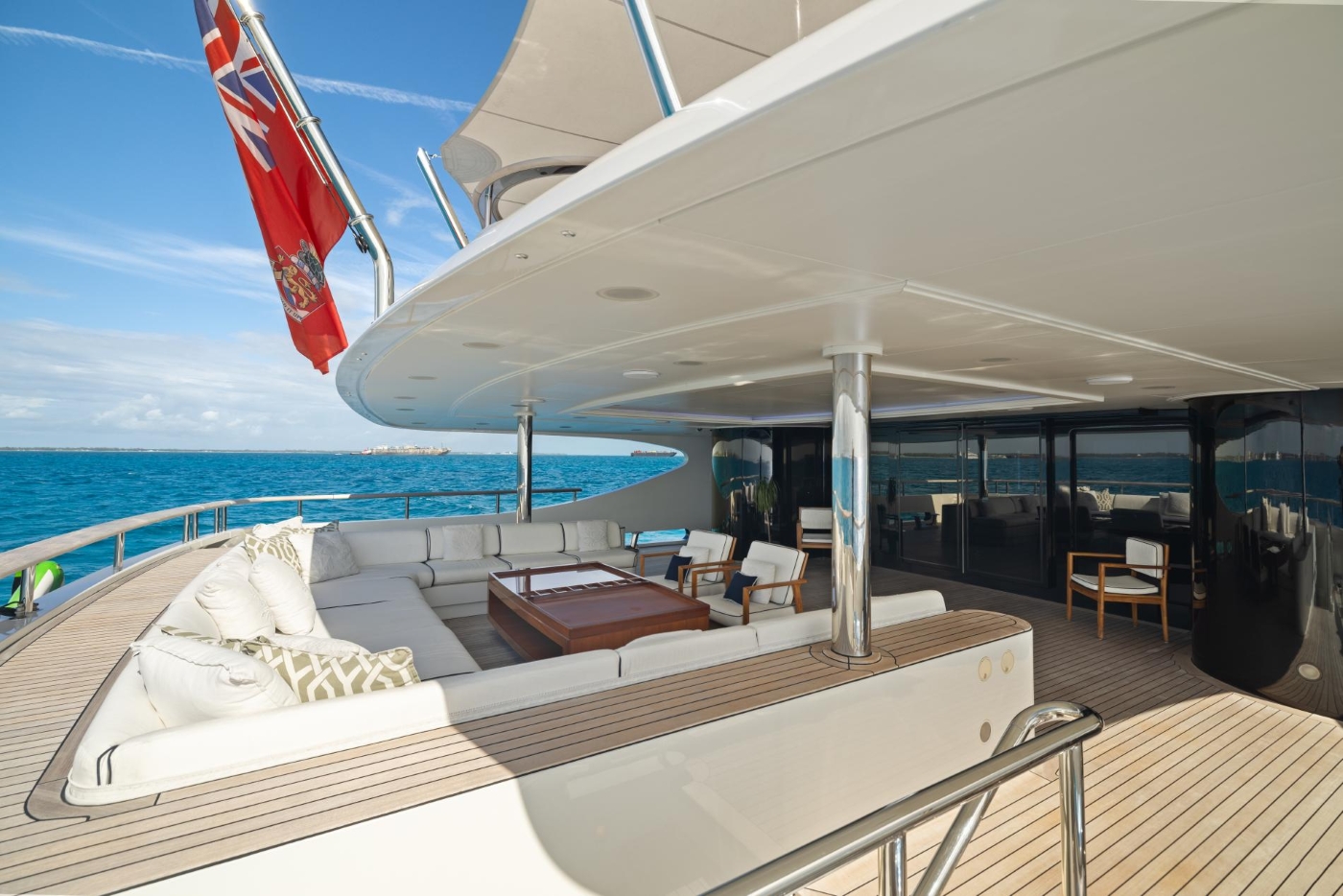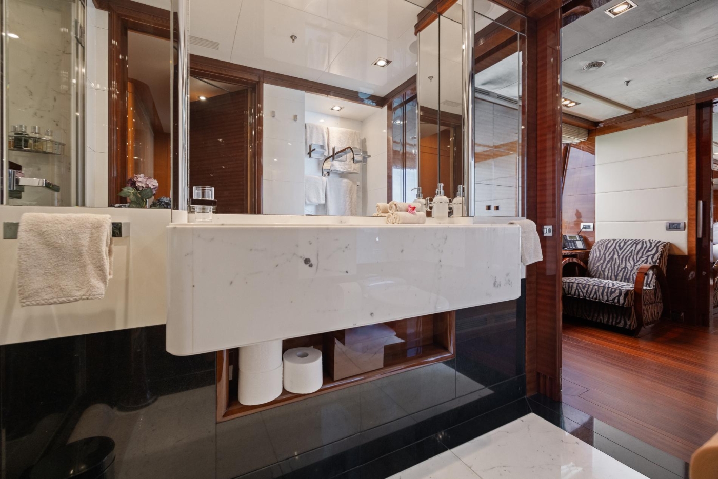 NOTABLE FEATURES: fab sun deck with 8 pax Jacuzzi ~ plenty of sun loungers ~ alfresco dining options ~ large main saloon with plenty of seating ~ full-beam master suite ~ VIP stateroom with sauna ~ disco area ~ Big screen on the main deck ~ amazing water toys selection including a water slide