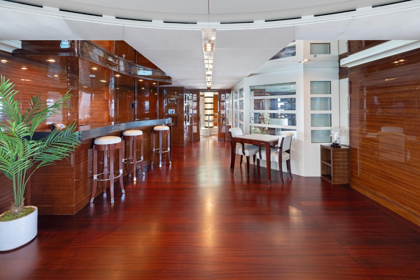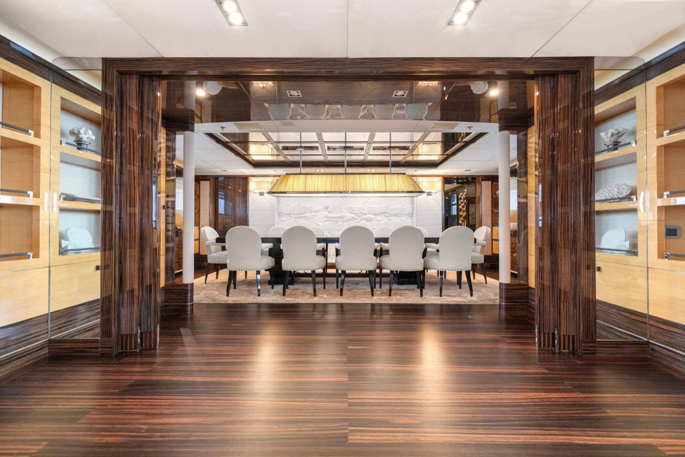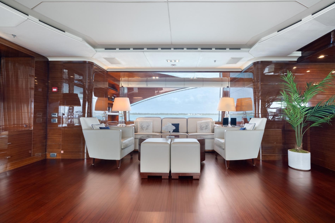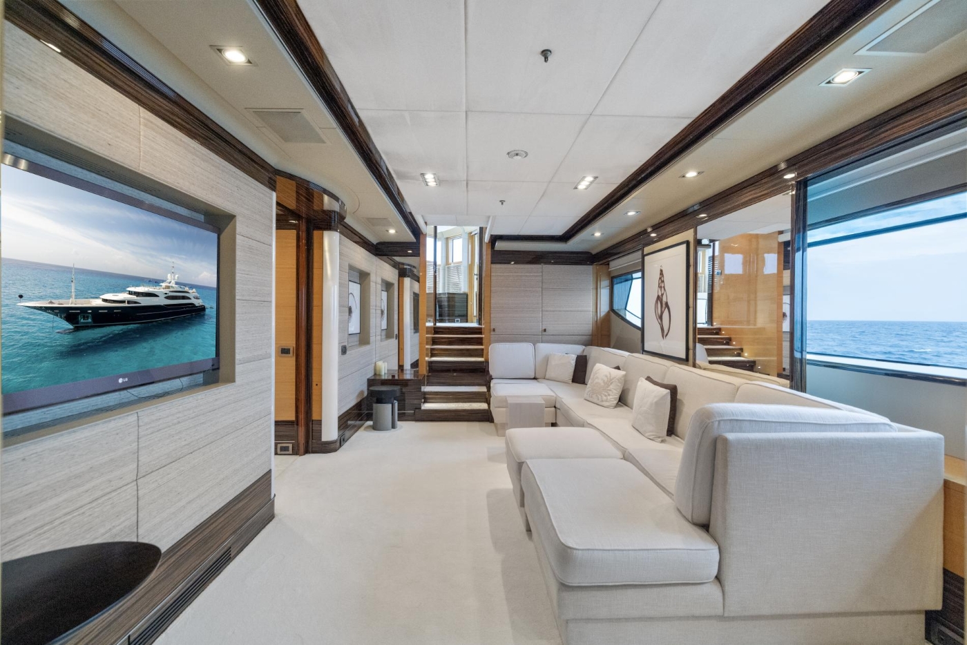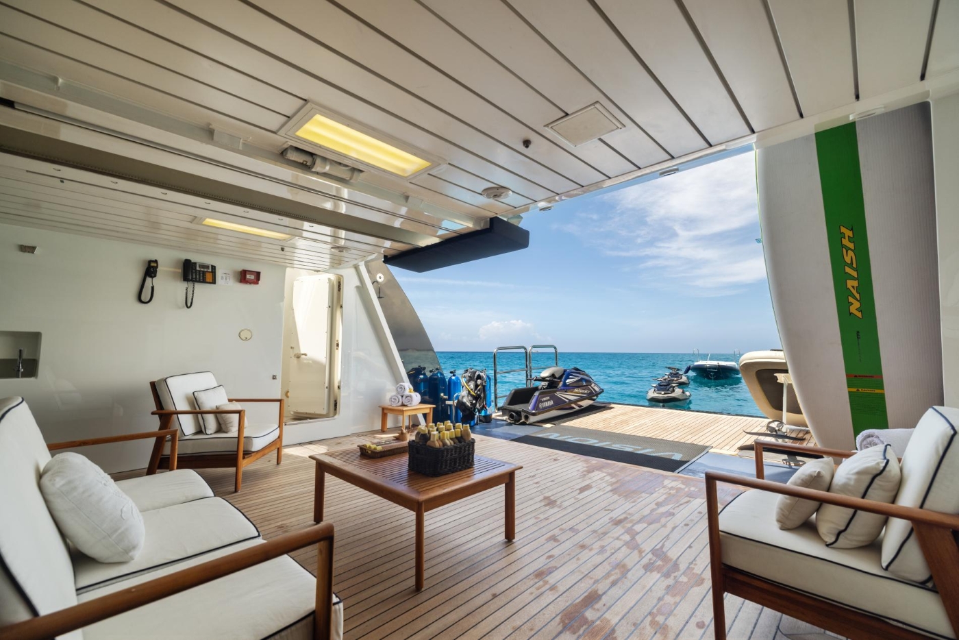 NOTABLE FEATURES: fab sun deck with 8 pax Jacuzzi ~ plenty of sun loungers ~ alfresco dining options ~ large main saloon with plenty of seating ~ full-beam master suite ~ VIP stateroom with sauna ~ disco area ~ Big screen on the main deck ~ amazing water toys selection including a water slide