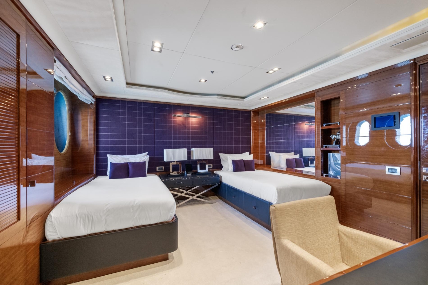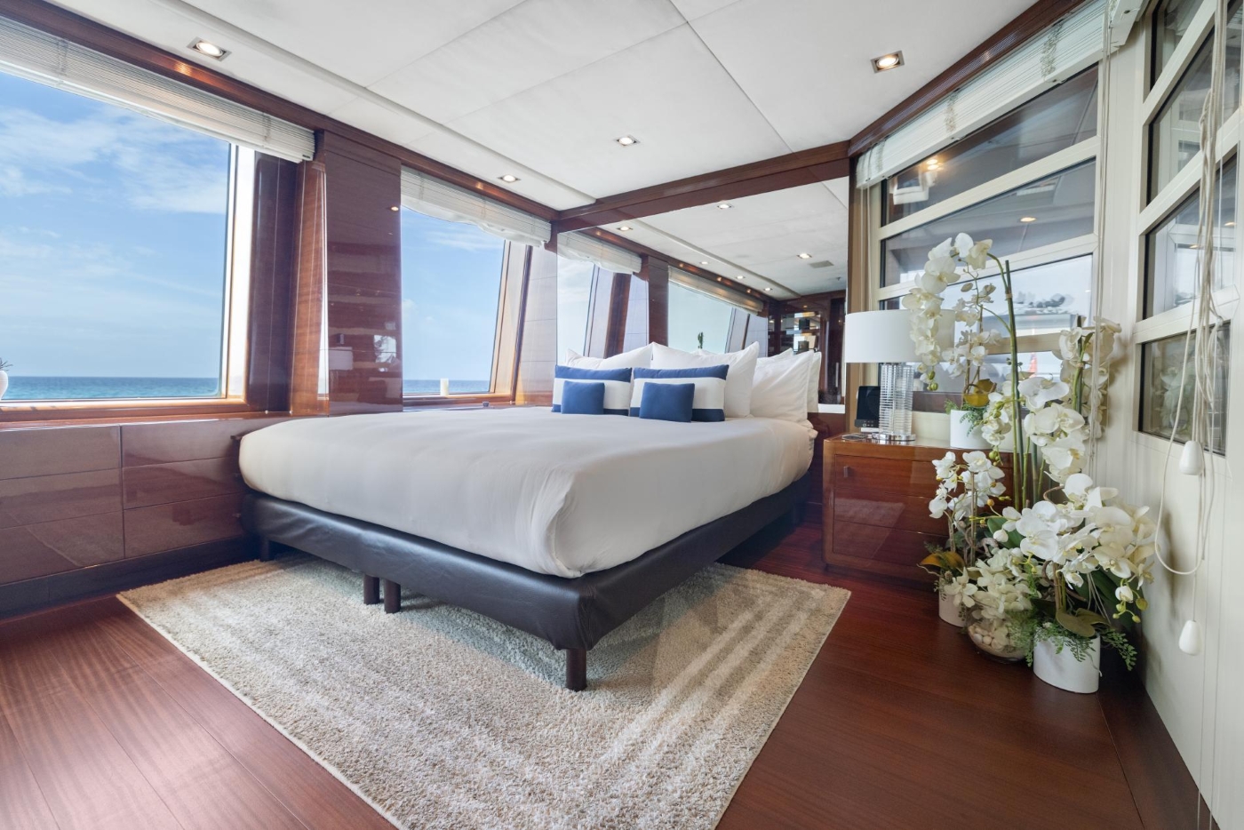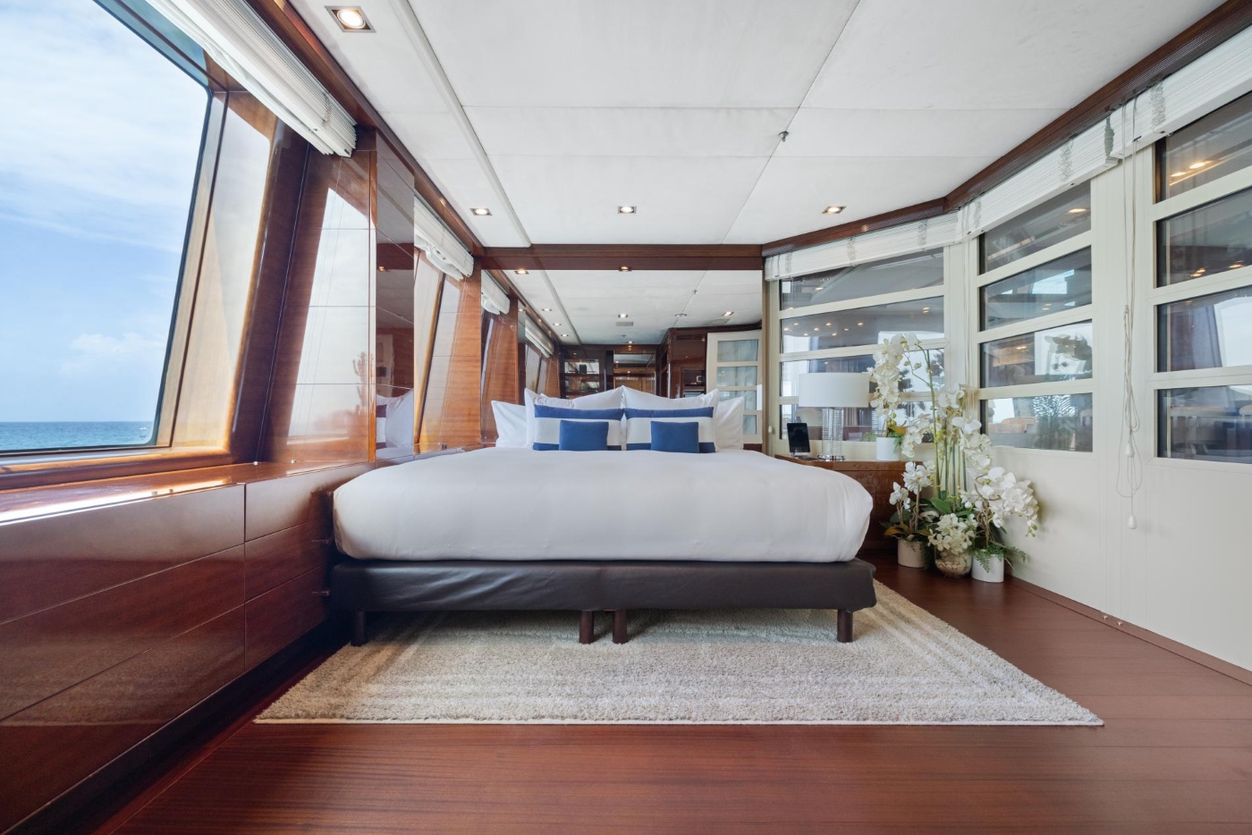 M/Y VISION is an excellent and luxurious charter yacht with wonderful exterior and interior spaces. She is able to accommodate up to 12 charter guests in 6 cabins including a Master cabin located on the main deck forward with magnificent panoramic views thanks to the oversized forward facing windows that shape the curved room. Plenty of light also penetrates into this spectacular stateroom thanks to the large circular skylight above. There is a VIP Cabin and a double cabin as well as two twin cabins on the lower deck as well as an extra convertible cabin on the upper deck.