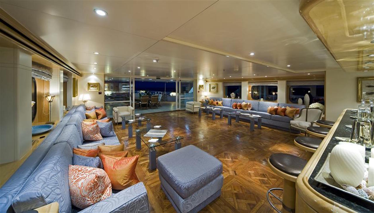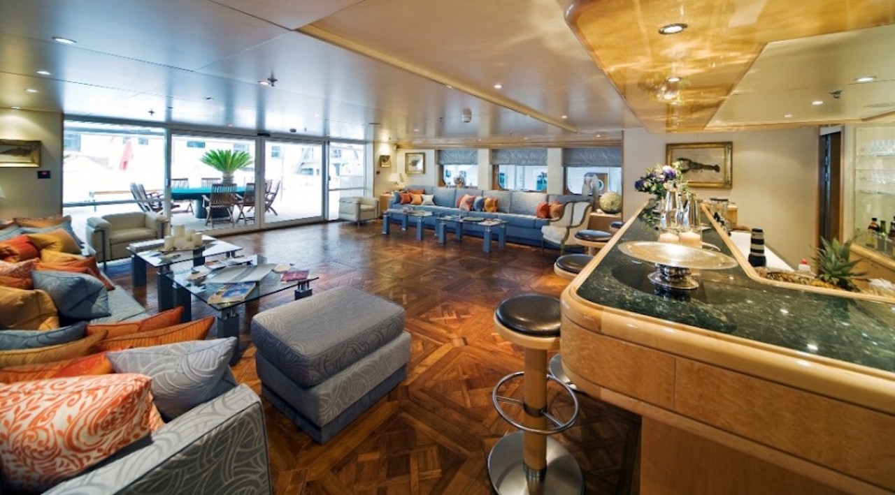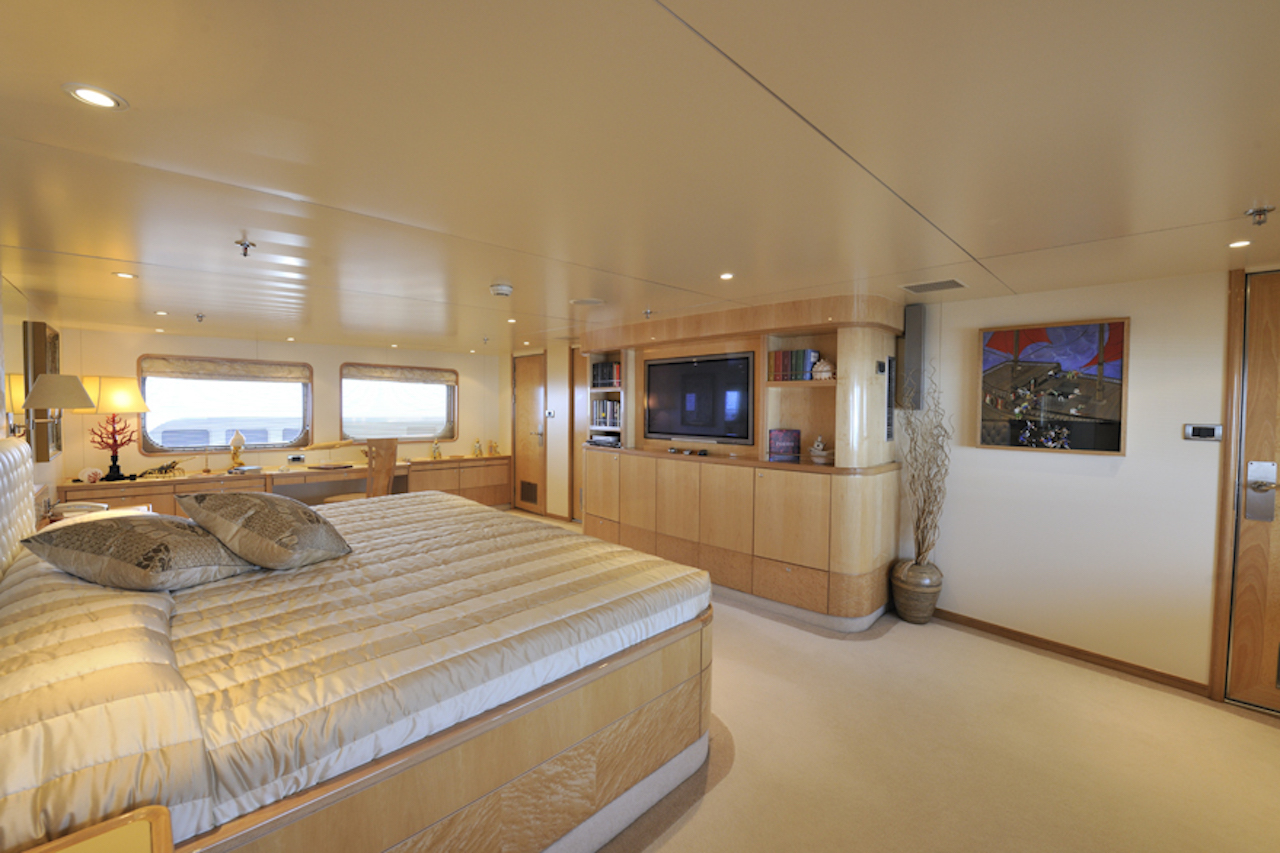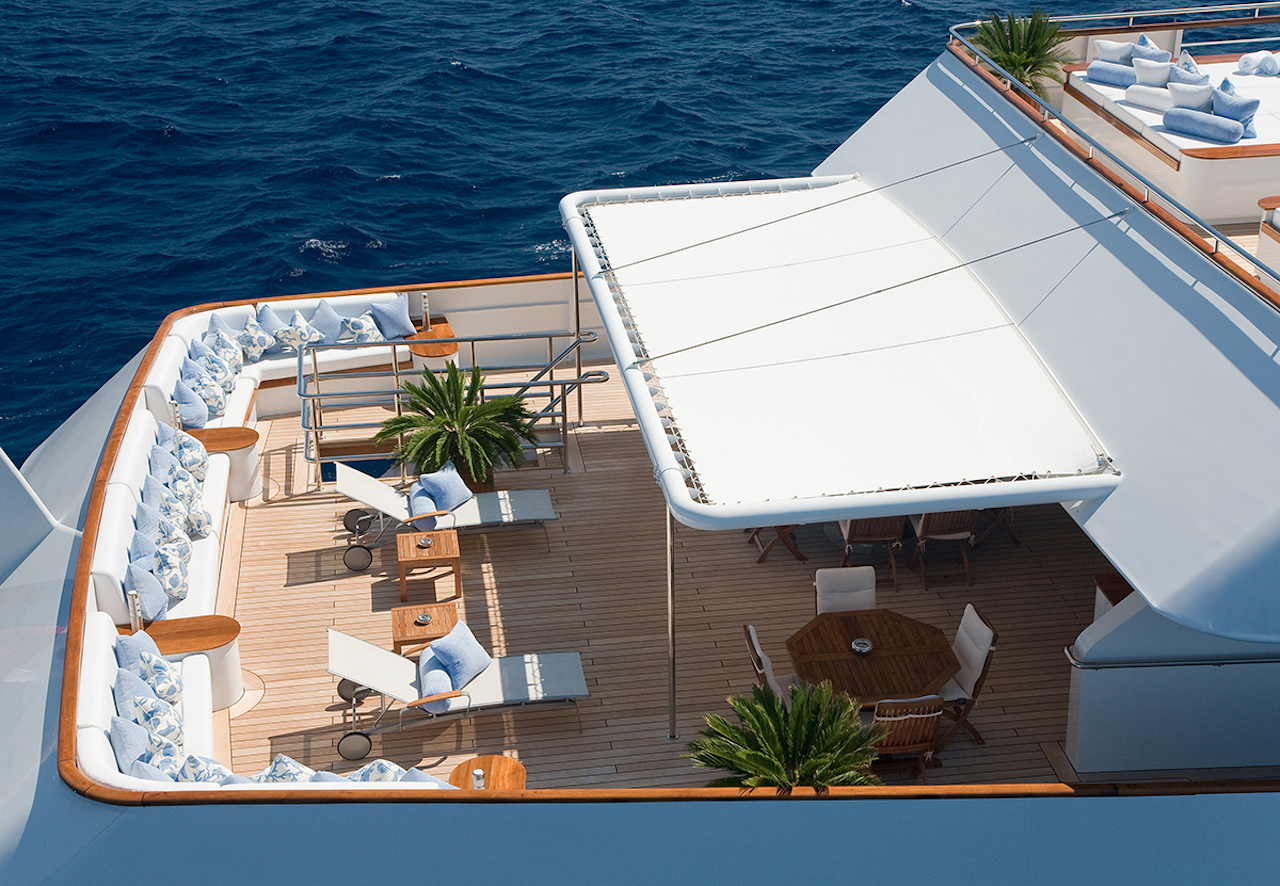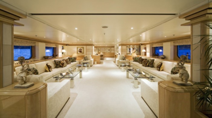 Luxury yacht TITAN went through a major exterior refit in 07/08. The hull was repainted blue Boero (opac finish/semilucida), and the exterior is being retouched in white. An additional sun deck was added with a bar and a barbeque. The interior was refitted in 2004 by the Owner; new fabric, new furniture…etc. This new interior has a very welcoming and luxurious touch with an Italian twist. The Owner took special care in choosing the fabrics and the decorative elements. SUN DECK: New tables 2m long. New cushions for the sun beds New bar New 3 x square parasols New Spa Pool Working on creating an indoor small spa area with gym.