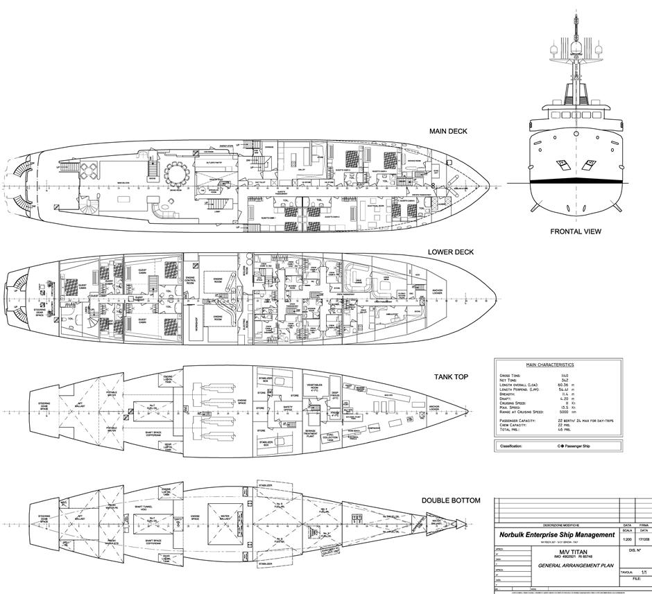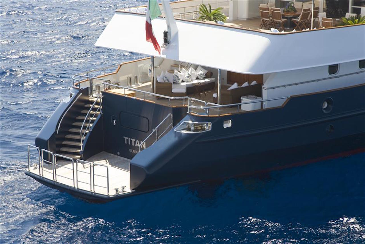 TITAN was born as a survey ship from the English Marine to become in 2003 a luxury yacht. During the complete refitting and refurbishing, a particular care was given to the choice of materials. The use of pear-tree essence for the wooden structures (from saloons to cabins) has given the ship an elegant and comfortable touch. TITAN is not just a simple yacht but a motor vessel able to welcome 22 guests on board with 21 select crew members always at the ready.