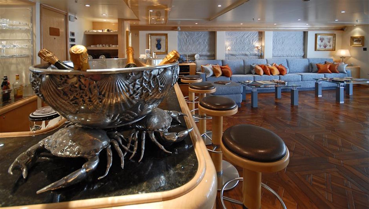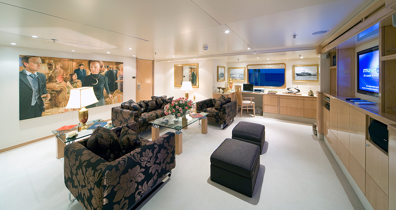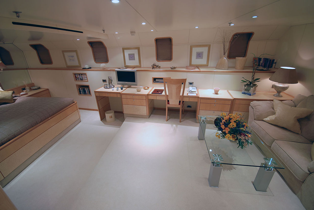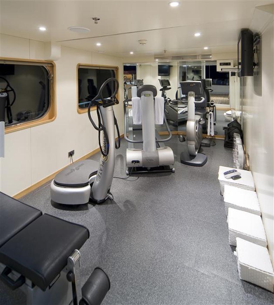 The wi-fi internet connection system is able to reach every corner of the vessel while the big projector screen transforms the main saloon into a home cinema. The open decks have been designed to guarantee a pleasant stay thanks to a spacious Spa Pool, a well-equipped gym and a comfortable and elegant sun deck with a bar and barbeque.