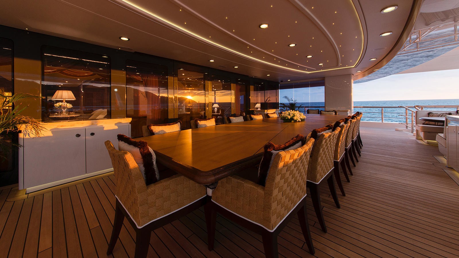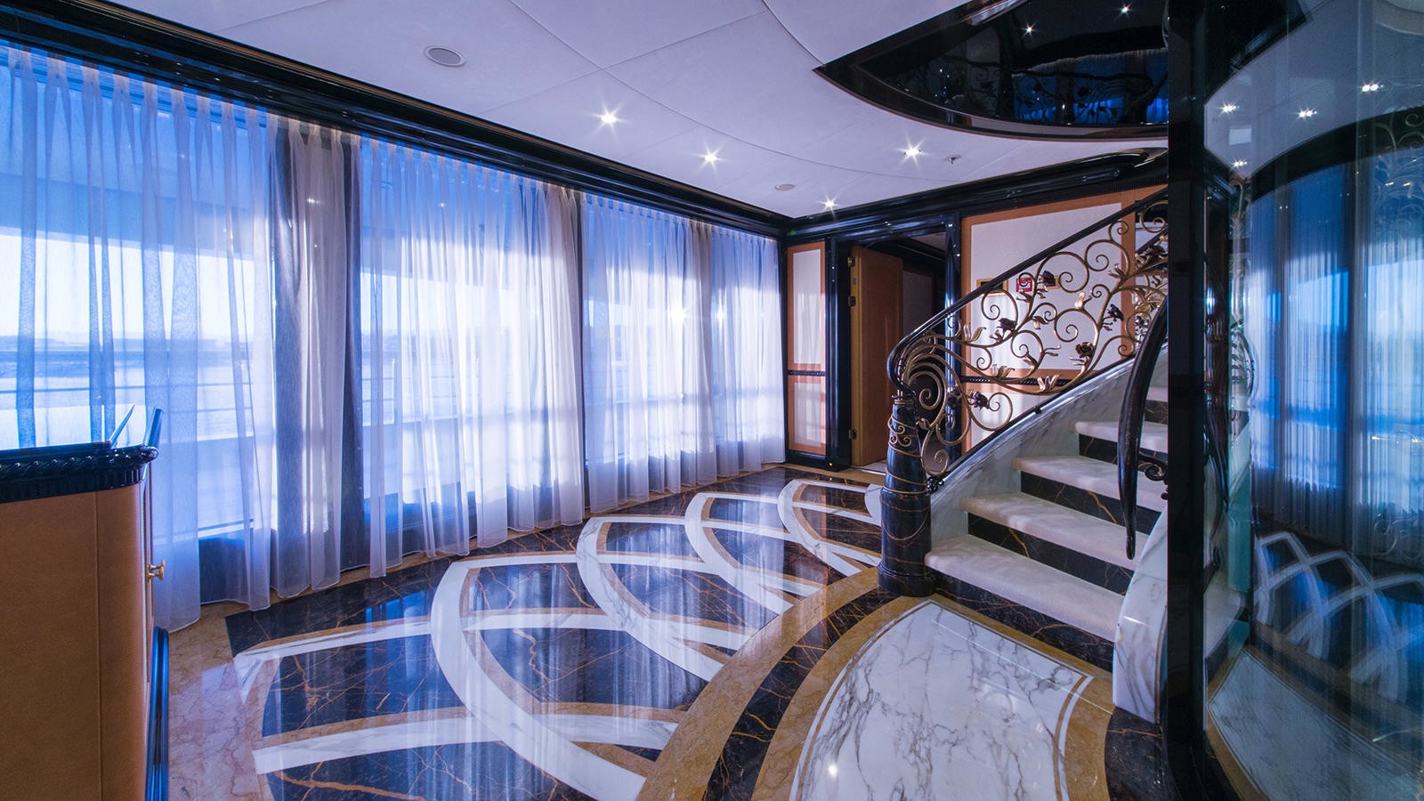 Beautiful accommodation aboard the 101m superyacht I Dynasty is provided to up to 22 guests in 11 magnificent cabins. There is also space for 30 professional crew, with additional space for 6 staff members.