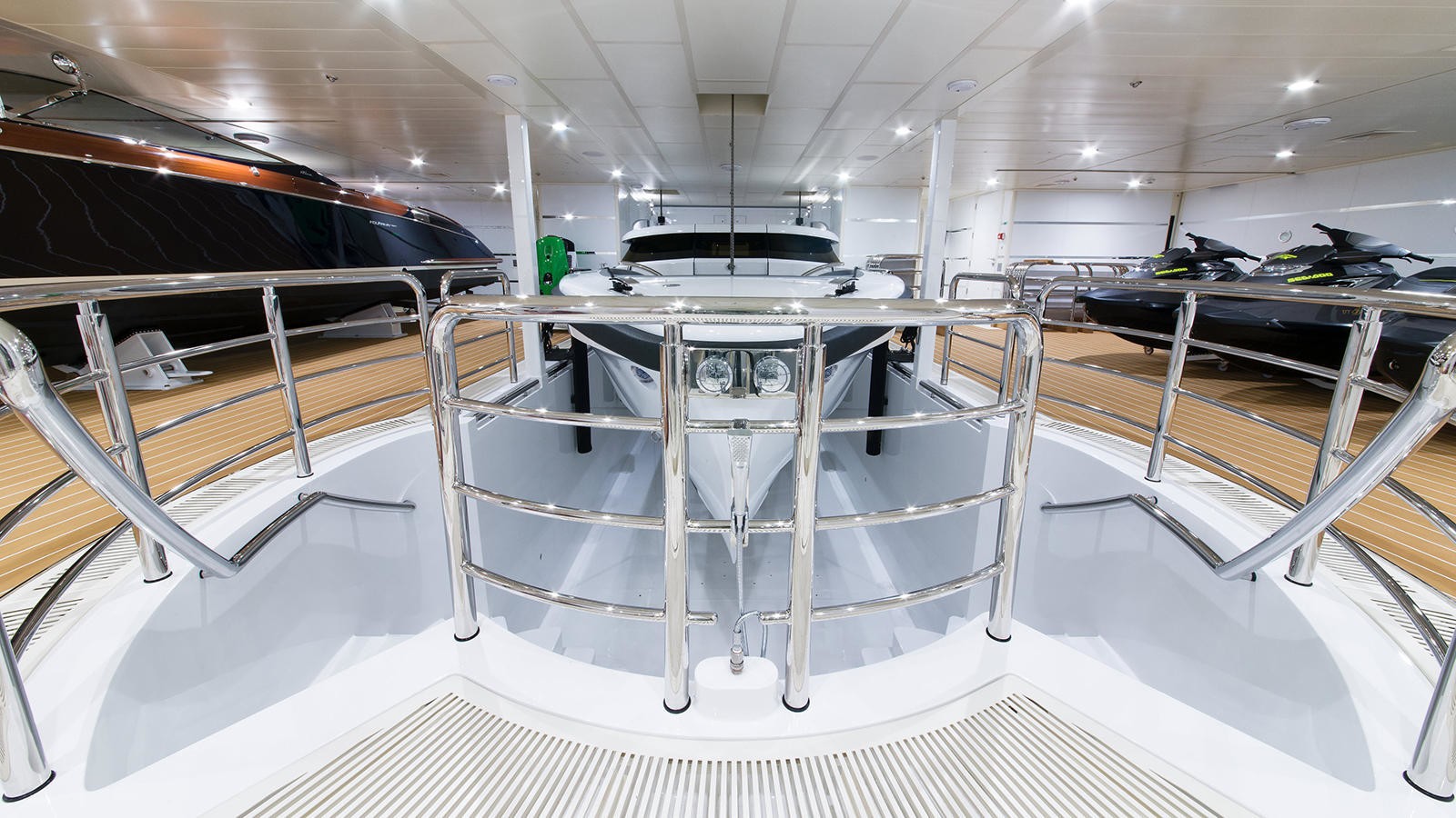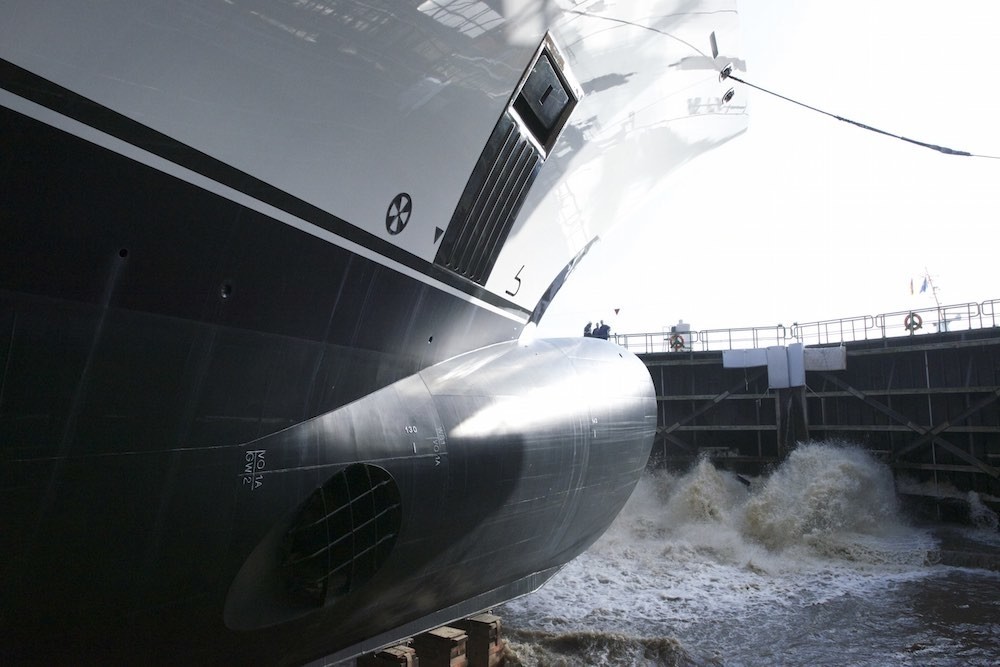Lloyds registered, the 101m (331') luxury yacht I Dynasty (project V853, hull number 691) has a steel hull and aluminium superstructure. She can reach a top speed of 17 knots and can comfortably cruise at 14 knots, thanks to her twin 2,430 kW Rolls-Royce Bergen Auxiliary engines and three 740kW Caterpillar generators, which are connected to twin Rolls Royce AZP 100 FP azimuthing pulling propellers. V853 yacht features a beam of 16m (52'49'') and a maximum draught of 5,55m (18'21'').