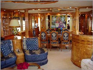 Virginia Mia has a wet bar between the salon and dining area with a lovely onyx countertop. Her formal dining area provides a nice oval table which accommodates up to 8 charter guests. Her office has a Sofa, en-suite head with shower and a concealed closet. A very large round skylight invites light and offers a view of the heavens. Virginia Mia’s aft Deck provides Al fresco dining for up to 10 guests with a mesh sun screen or the option of enclosing. She has a swim deck with handy shower and there is a telephone in lazarette.