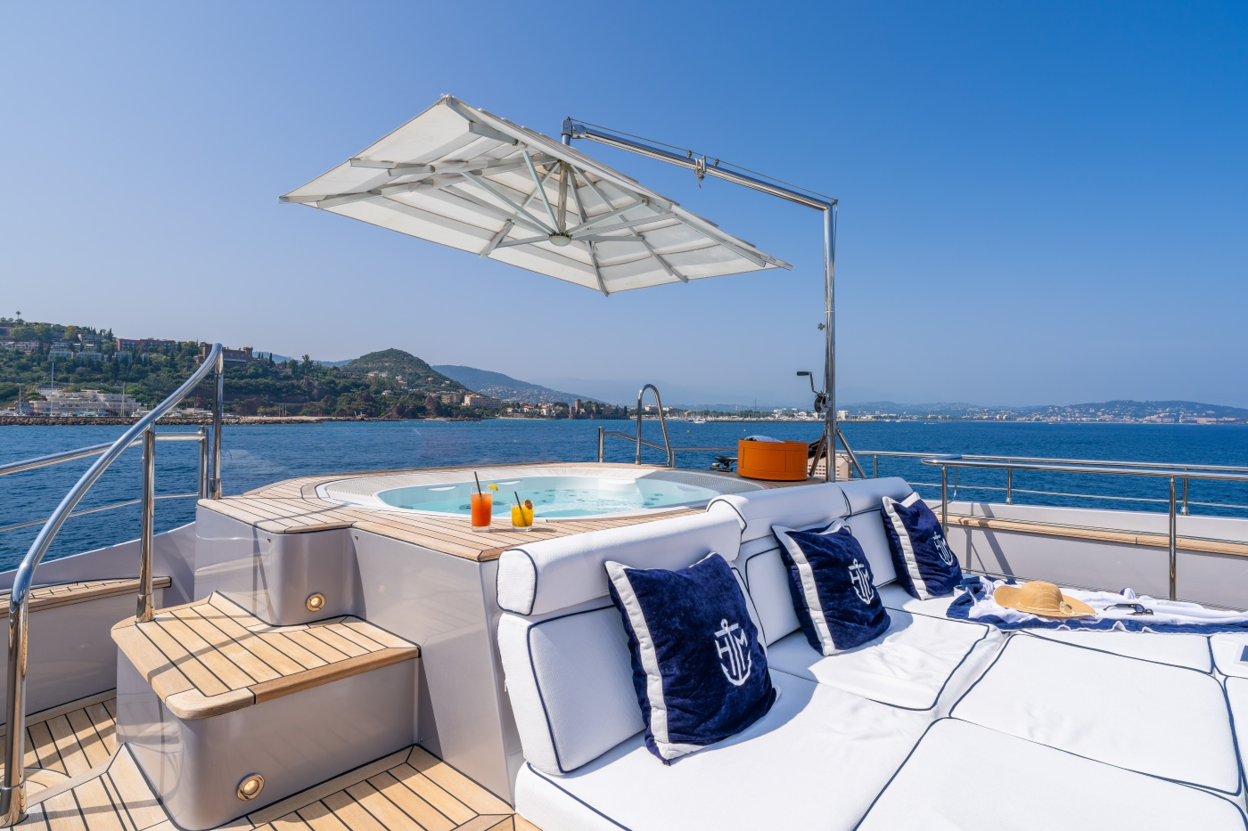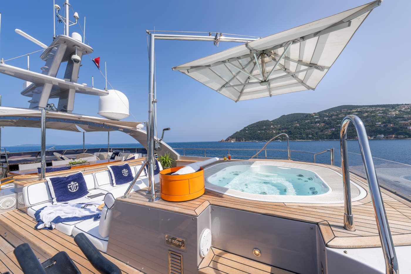 HATT MILL boasts numerous outdoor areas to relax, dine and enjoy the outdoors at the sea. Her aft main deck has a spacious seating area arranged in a u-shape to allow guests to socialise, while her bridge deck offers a beautiful al fresco dining set up. Excellent sunbathing area, further bar and dining as well as the popular Jacuzzi spa pool can be found on the sun deck.
