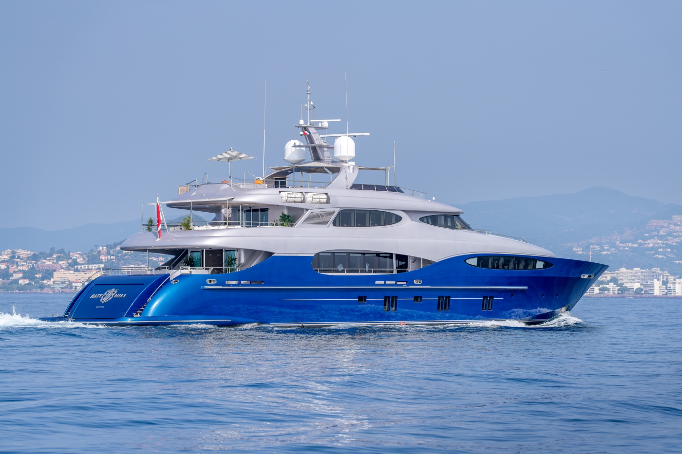 NOTABLE FEATURES OF HATT MILL: ~ expansive deck areas ~ spacious accommodation ~ owner's office with private gymnasium ~ spa pool/Jacuzzi ~ comfortable sky lounge ~ vast decks ~ air-conditioning ~ Starlink & WiFi ~ stabilisers underway ~ stabilisers at anchor ~ great selection of water toys ~ approved RYA water sports centre