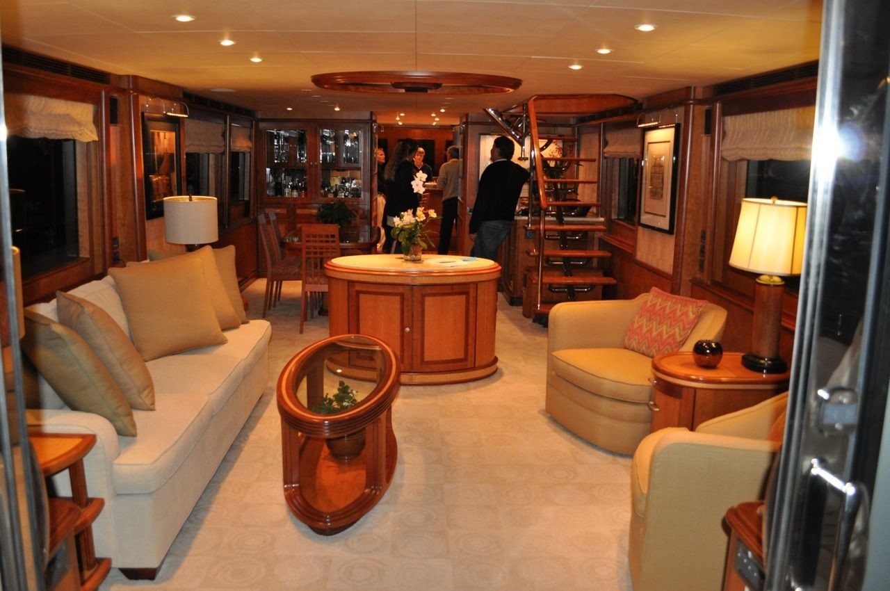 AURELIA boasts a tremendous amount of space both above decks and below. Her welcoming salon offers plushly upholstered seating areas, with huge wraparound windows and gleaming wood furnishing. Her formal dining area leads to a fully equipped and beautiful full-beam galley where the chef will prepare sumptuous delights designed to suit your specific tastes.