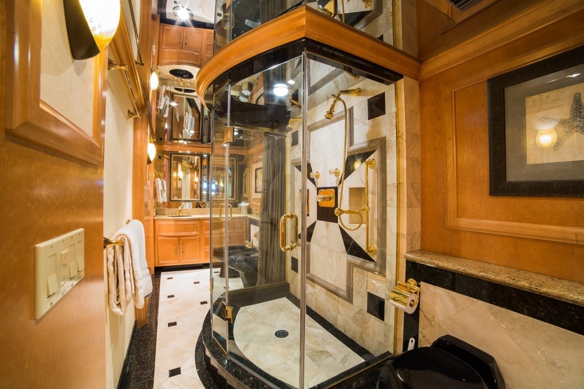 Motor yacht WON BUY LAND accommodates 6 guests in 4 roomy cabins, the master cabin is full beam of the yacht and features a king size bed, TV, vanity, love seat and large his and hers facilities with custom shower. The VIP cabin is full beam and forward and offers a queen size bed, vanity, TV and en-suite facilities with shower. A further queen size cabin and twin cabin also offer TV and en-suite facilities. All cabins boast high quality maple finishes, inviting neutral soft furnishings and marble in the en-suite bathrooms.
