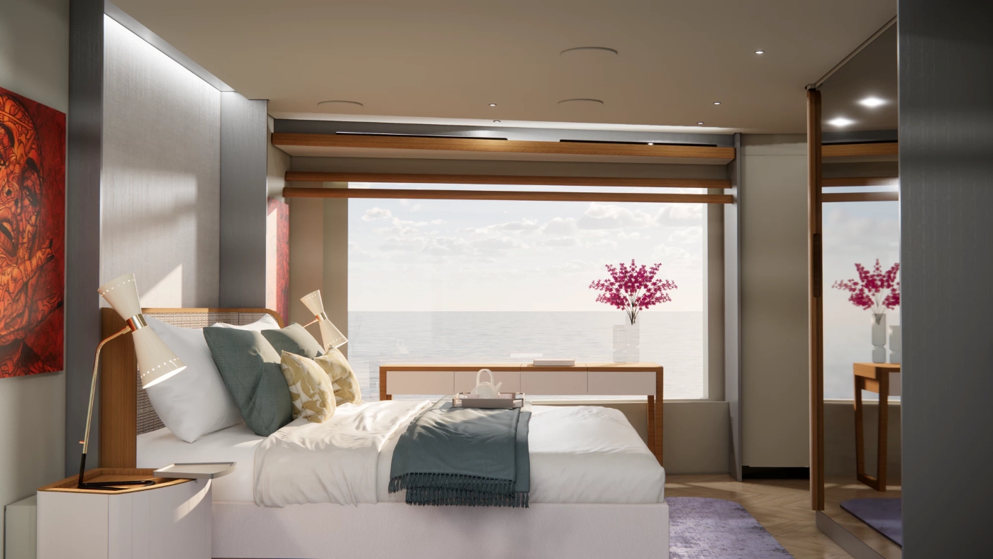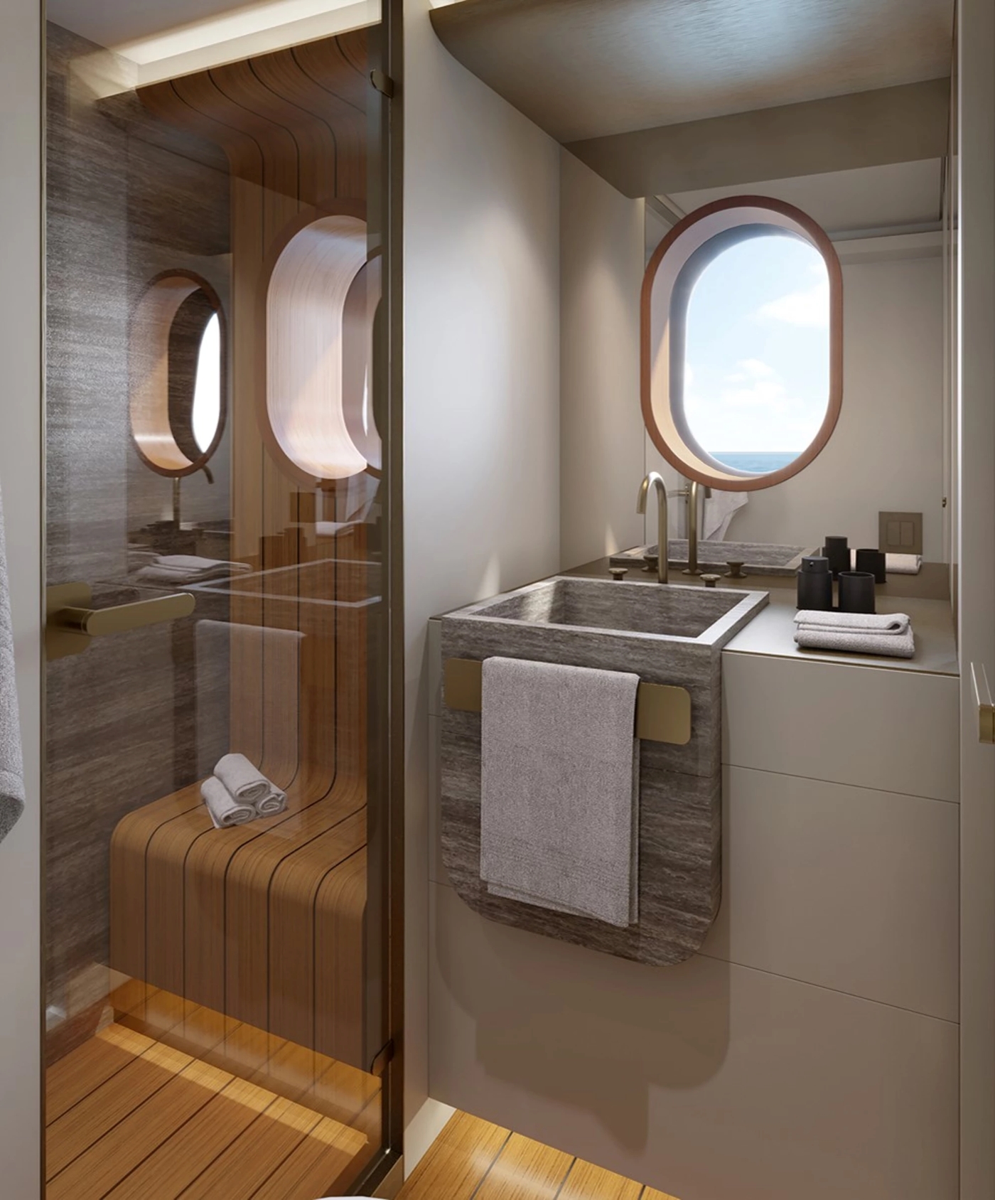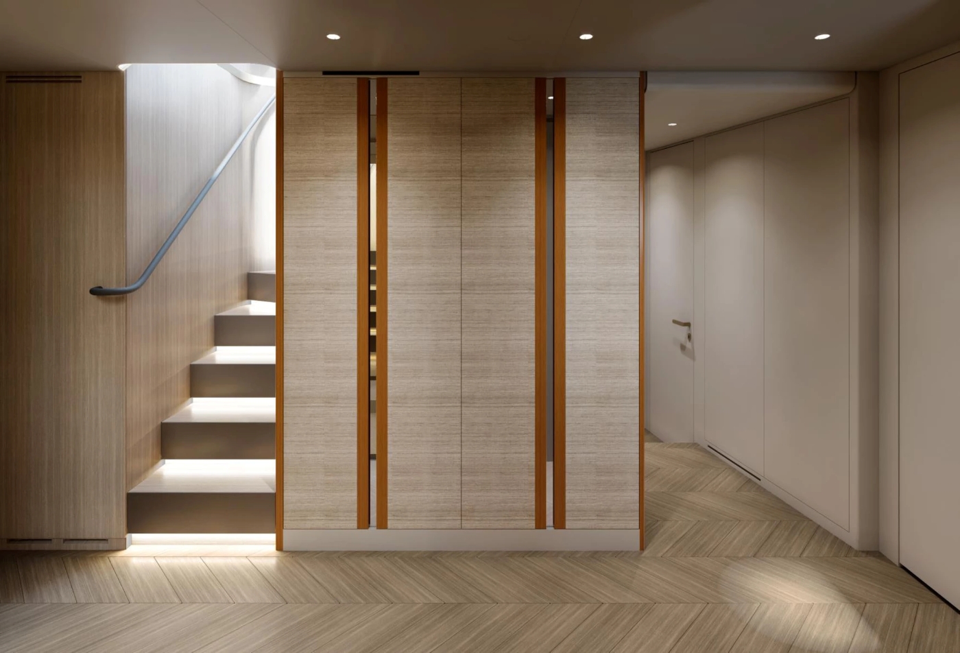 Accommodation for 12 guests in five en-suite staterooms: ~Main deck Master Suite: full-beam with panoramic glazing, bespoke décor and private lounge area ~2 VIP Staterooms: queen-sized beds and modern en-suites ~2 Twin Staterooms: each with 2 single beds and 1 Pullman, ideal for families or groups ~All cabins include ambient lighting, contemporary styling, and refined en-suite bathrooms