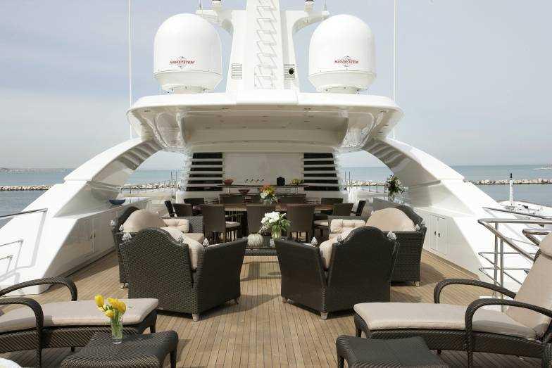 This voluminous and luxurious yacht boasts an innovative design that provides everything desired. With décor and furnishings of neutral tones, eight different kinds of wood softening the spacious, inviting interiors, Italian marble running throughout and touches such as silver basins in all the bathrooms, no expense has been spared in creating the ultimate vessel.