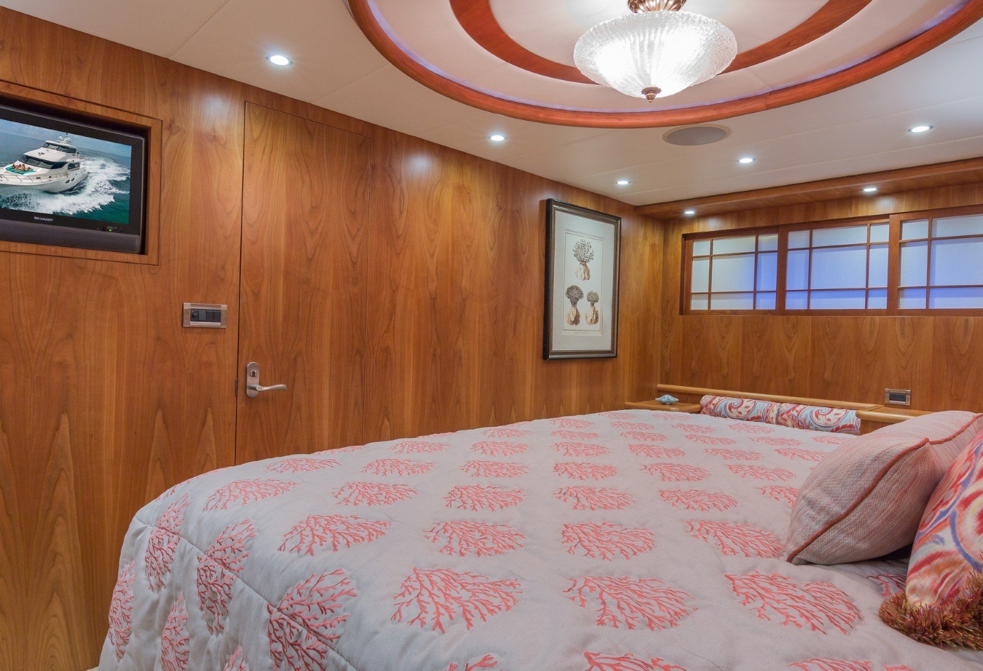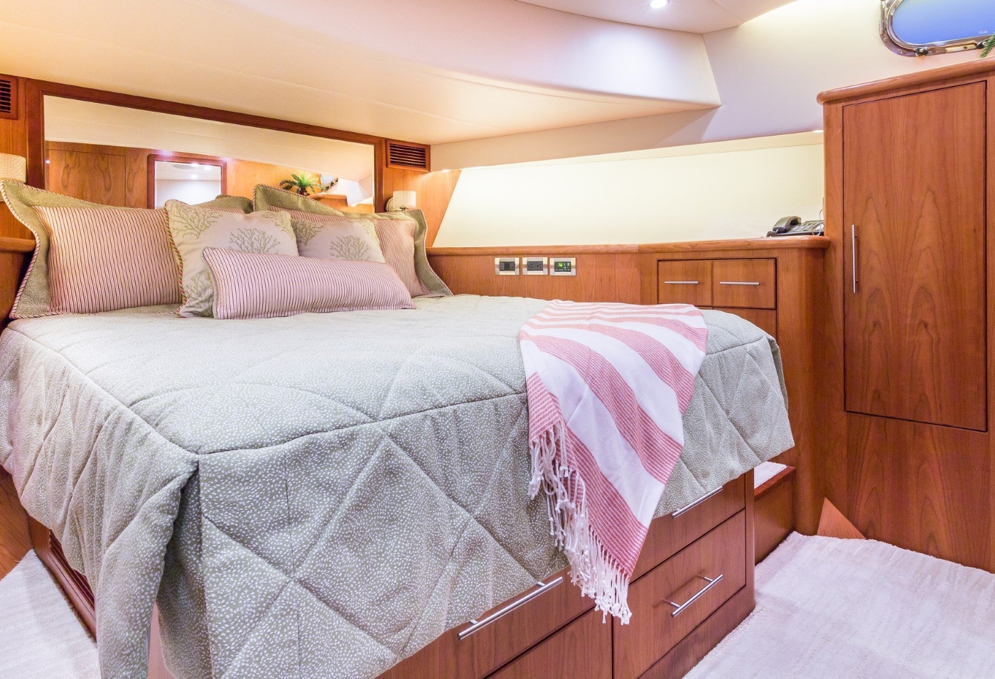 The Symbol 85 Yacht ANDIAMO can sleep up to 6 guests in 3 cabins including a Master Stateroom located Below amidships with King size bed, large walk-in wardrobe closet, TV, DSS, DVD/CD player. Ensuite bath with large shower and private toilet area. The VIP Stateroom is located, below and forward with Queen size bed, wardrobe closet, TV, DSS, DVD/CD player. Ensuite bath with shower. The Starboard Guest Stateroom has Convertible Twin beds, wardrobe closet, TV, DSS, DVD/CD player. Ensuite bath with shower.