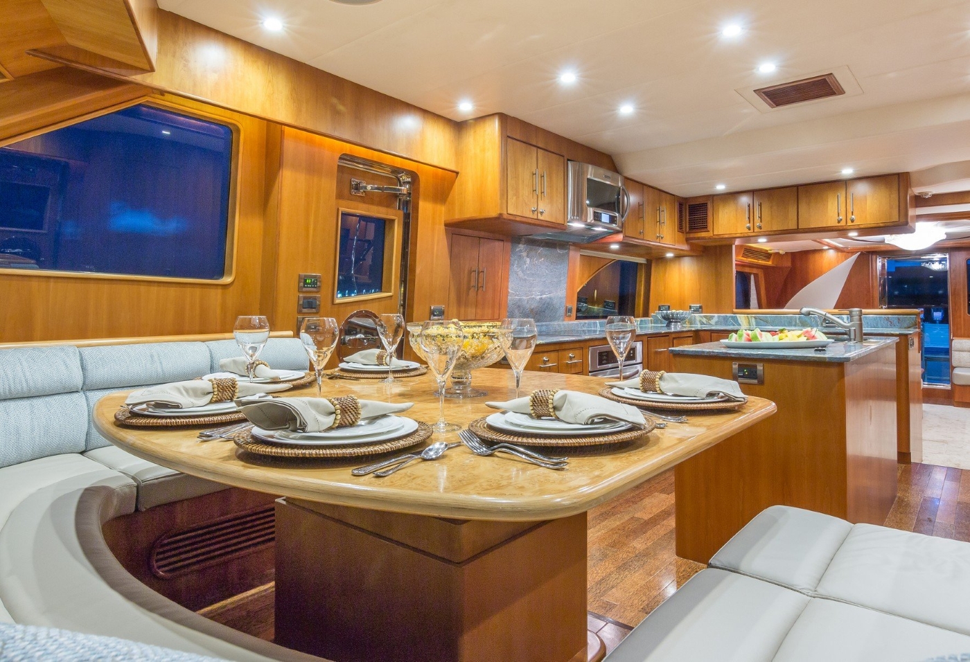 The Symbol 85 yacht ANDIAMO has been designed to be an ultimate fishing and diving yacht. Her aft deck is enviable to many modern sportfishing boats with an extensive array of fishing gear including plenty of rod holders, live baitwells, refrigerated fishboxes, scuba tank storage, electric reel stations, large transom door, and a dive platform. She has updated state-of-the-art electronics and a/v systems throughout including an HD "Go Pro" camera/video.