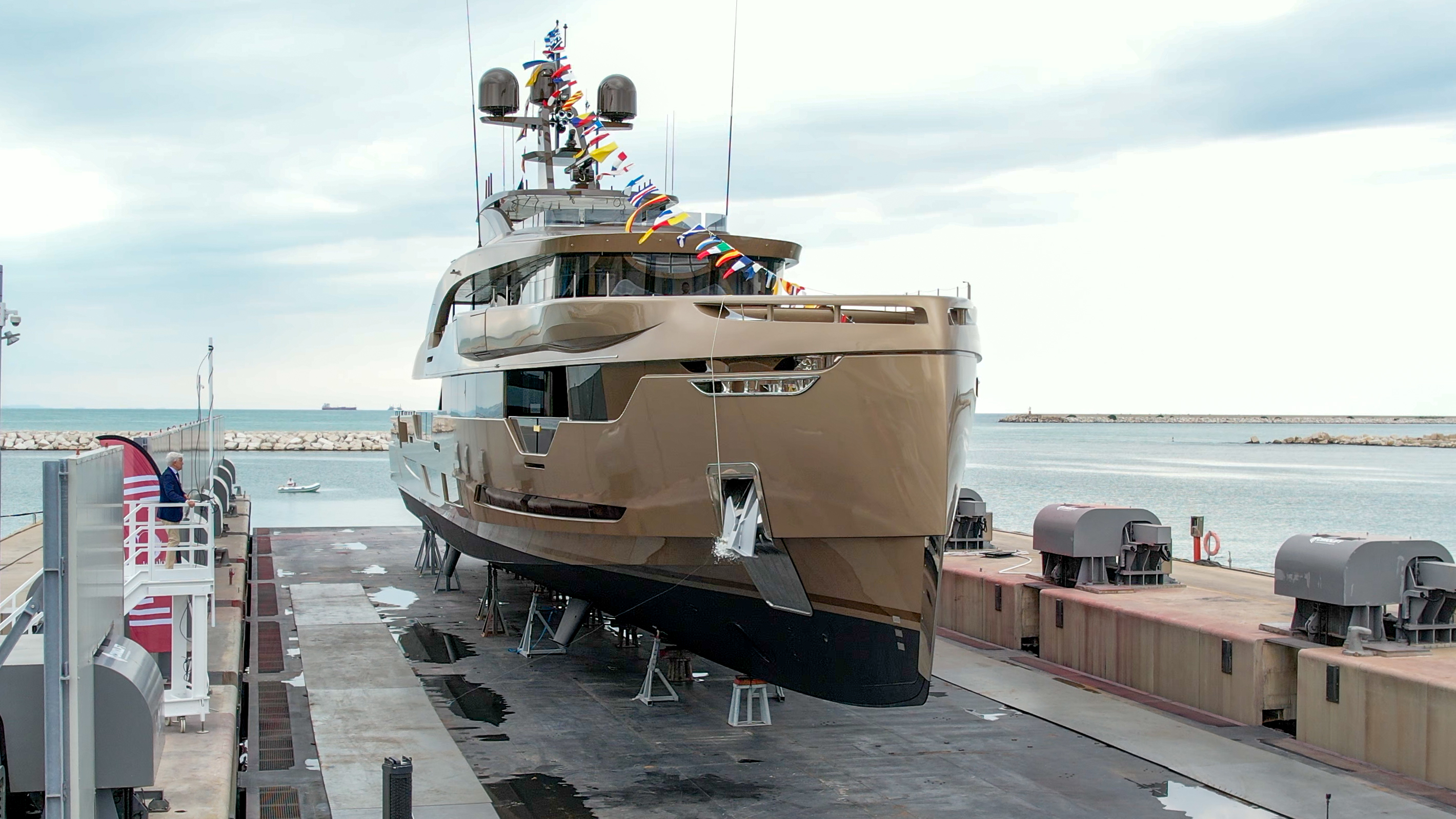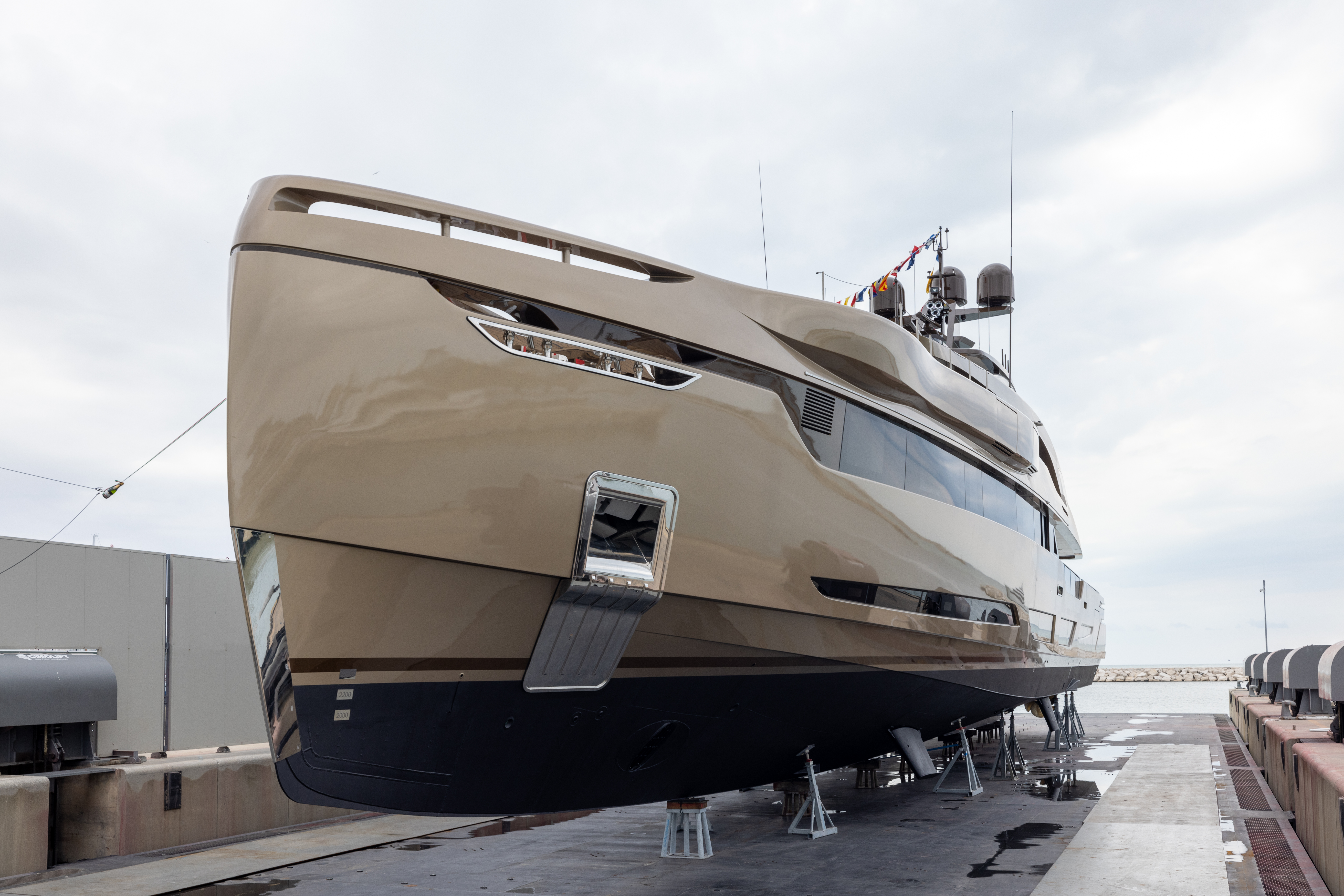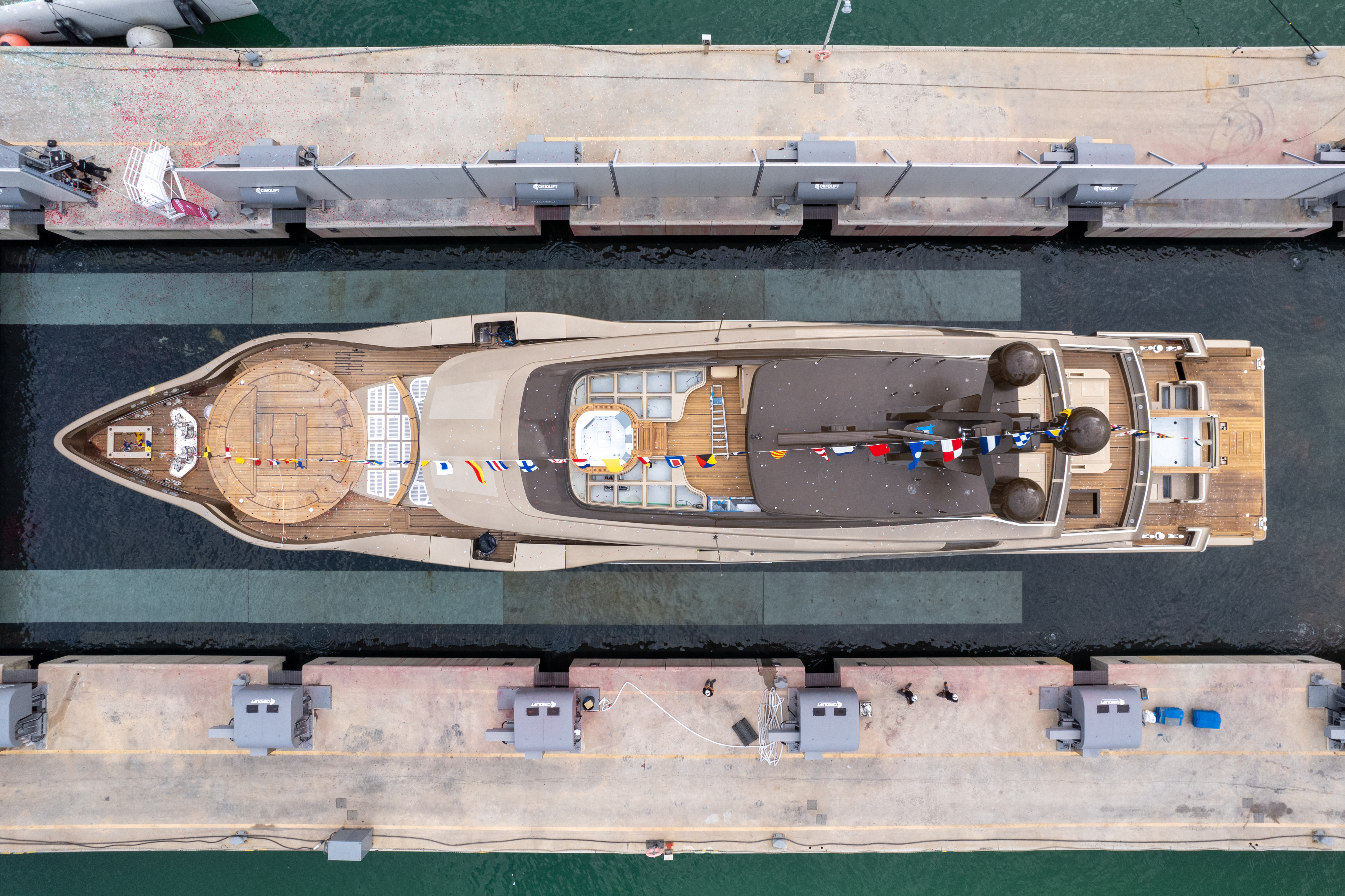 Thoughtfully zoned, there is a swimming pool in the transom with exposed teak finish and a second Jacuzzi on the top deck. On the bow a touch & go helicopter docking platform can be transformed into an open-air cinema.