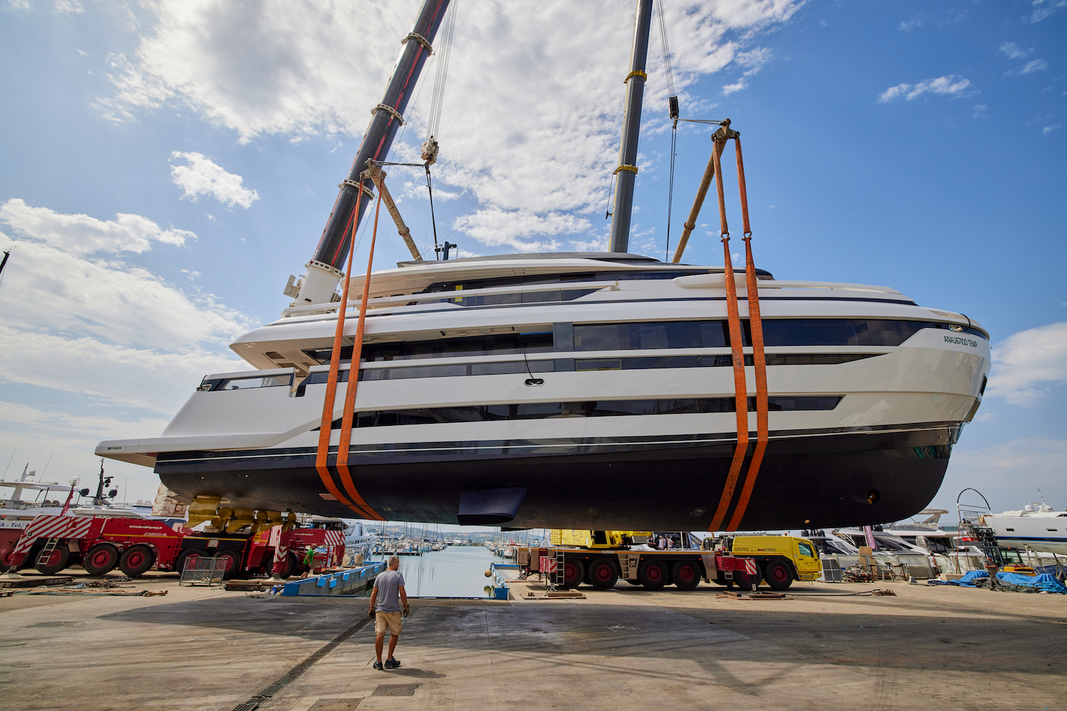 Luxury yacht ANVILUGI is the first hull of the EXTRA X96 Triplex model from EXTRA Yachts, a brand of ISA Yachts. Launched in 2021, the concept and naval architecture for this 28.6m/94ft vessel comes from Palumbo Yachts while the exterior styling is by Guida Design and the interiors from Italian studio Hot Lab. The EXTRA X96 Triplex is designed to raise the standards for yachts under 30.5m/100ft, bringing contemporary styling and luxury along with reduced fuel consumption and long-range cruising capability. She is constructed with a carbon composite hull and superstructure for a reduced draft and excellent comfort on board, and accommodates a total of 10 guests in five en-suite cabins.