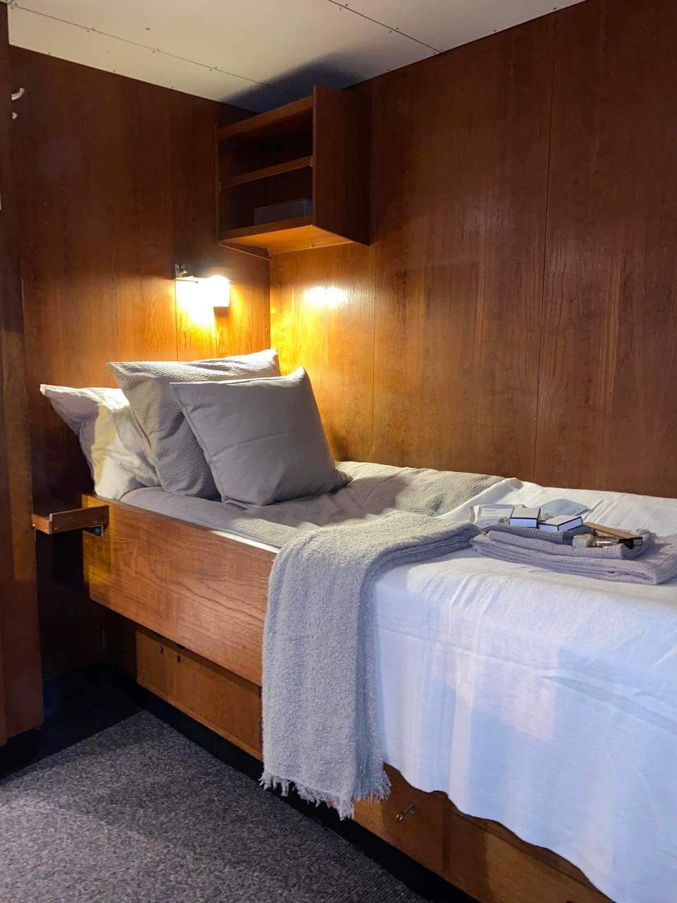 The inviting guest cabins are all ensuite and configured as three doubles and four singles with four additional pullman bunks.