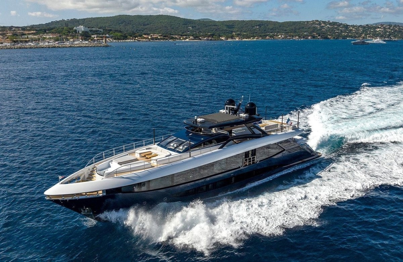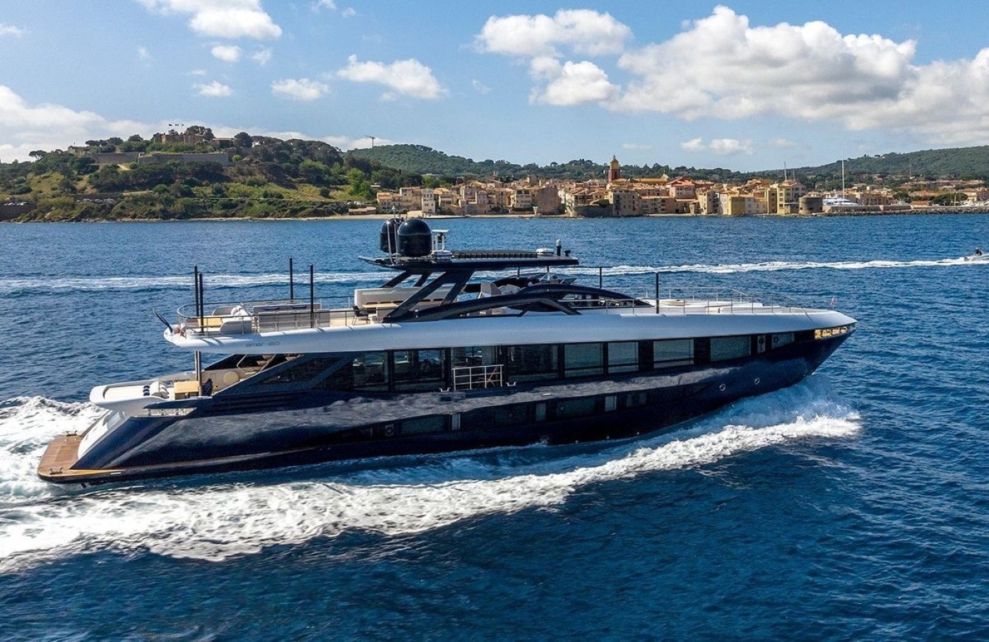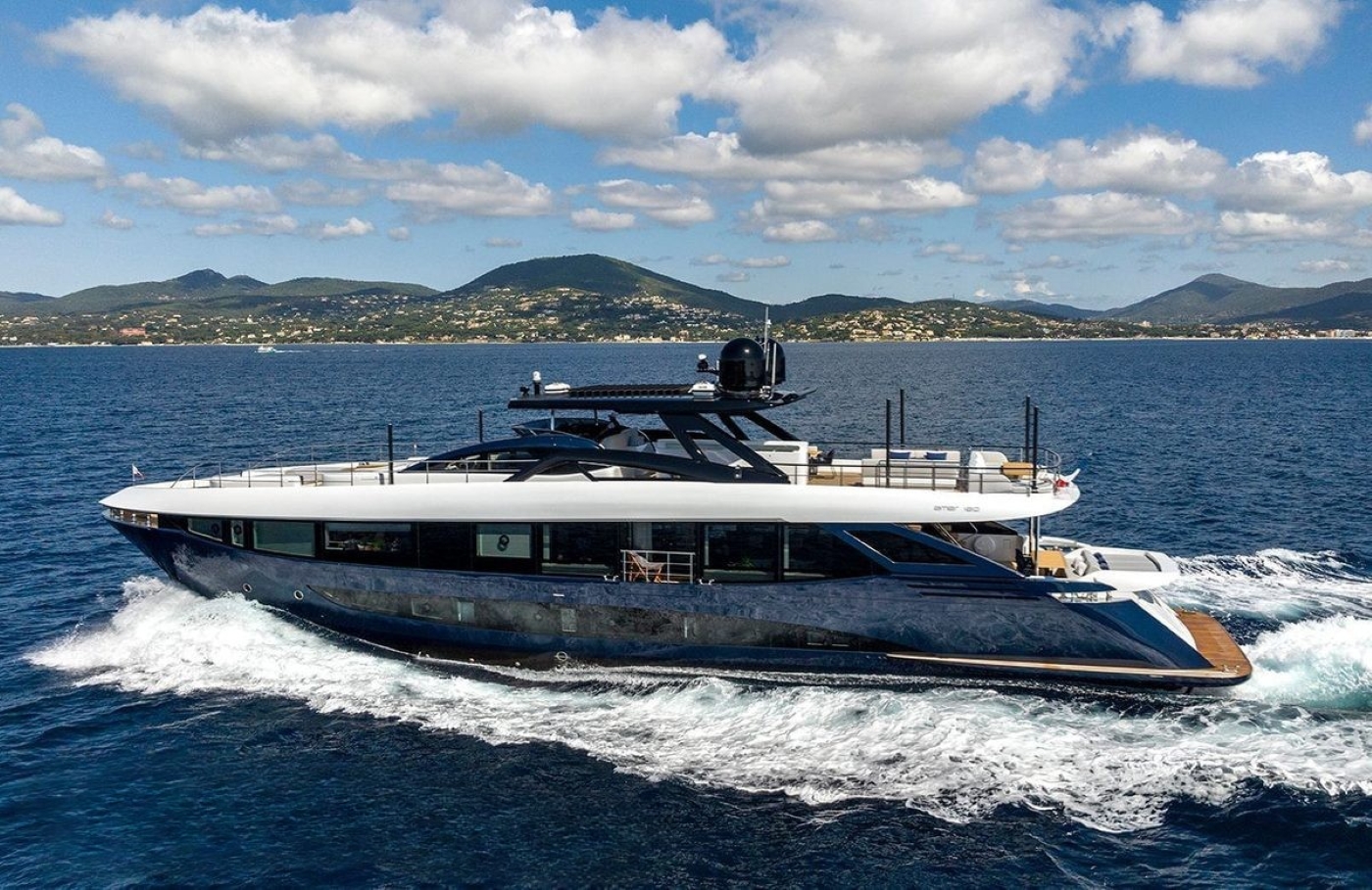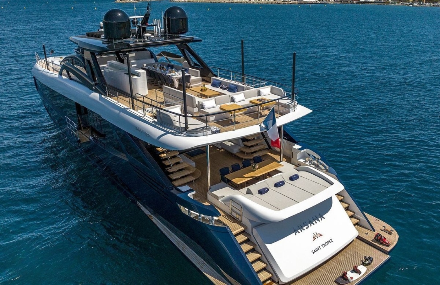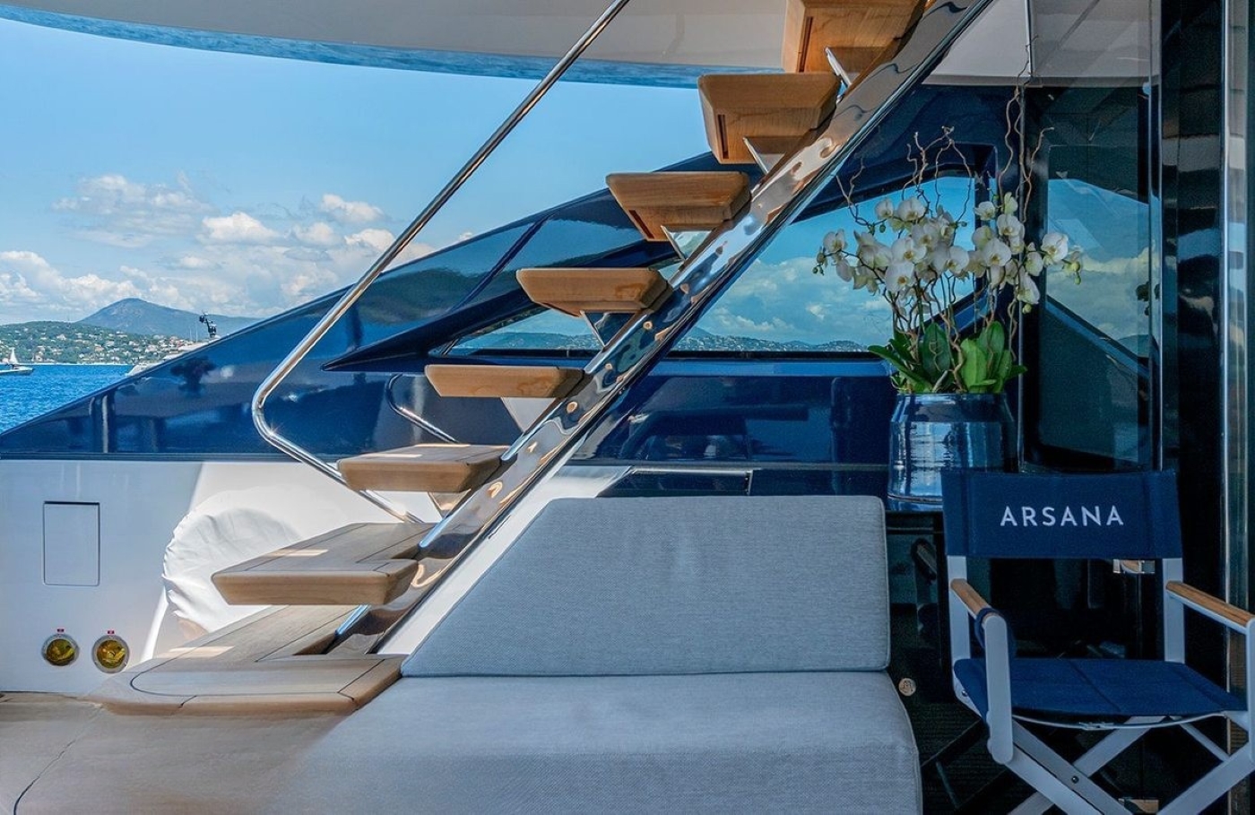 Motor yacht ARSANA is a 35.50 m (116' 6") Amer yacht characterised by its modern, clean lines and cool blue aesthetic. Built in 2023 using recyclable glass and metal she boasts a max speed of 27 knots with low fuel consumption. She can accommodate up to ten guests in five suites including a main deck master suite.