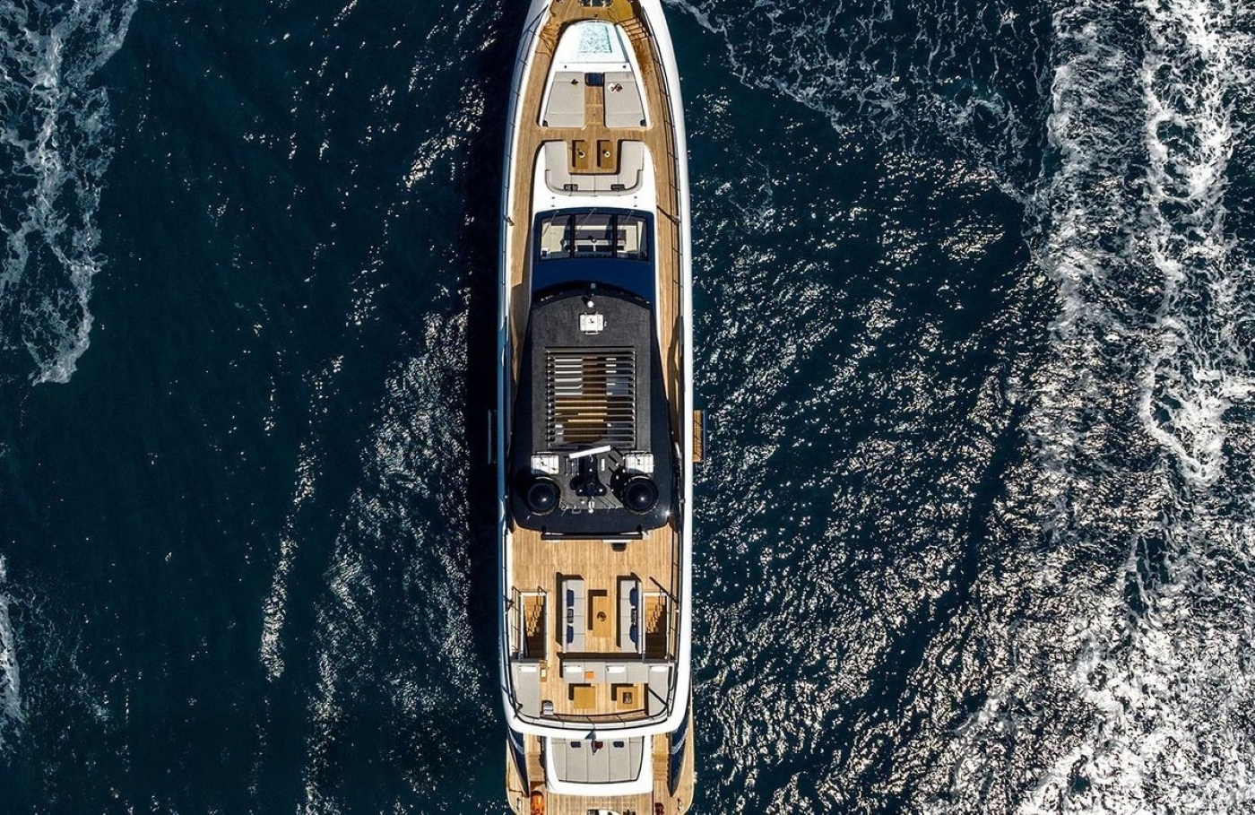 Her exterior designed by Andrea Ramasco, with naval architecture by Massimo Verme, the RINA-class ARSANA boasts four engines that provide 4000 HP performance while only using 25% of the power of other comparable sized yachts. She boasts a sleek profile with a cool blue hull and generous deck spaces across the sun deck, foredeck and main deck aft.