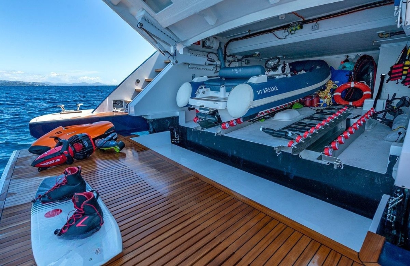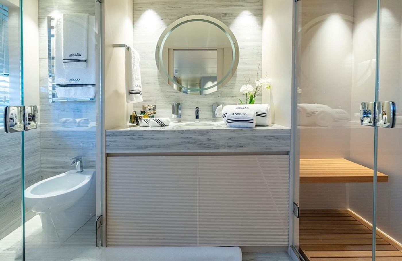 NOTABLE FEATURES OF ARSANA: ~Contemporary eco-credentials ~Deck jacuzzi ~At anchor and underway stabilisers ~Full beam owners suite on the main deck ~Fold out balconies in the main salon ~Air conditioning ~WiFi