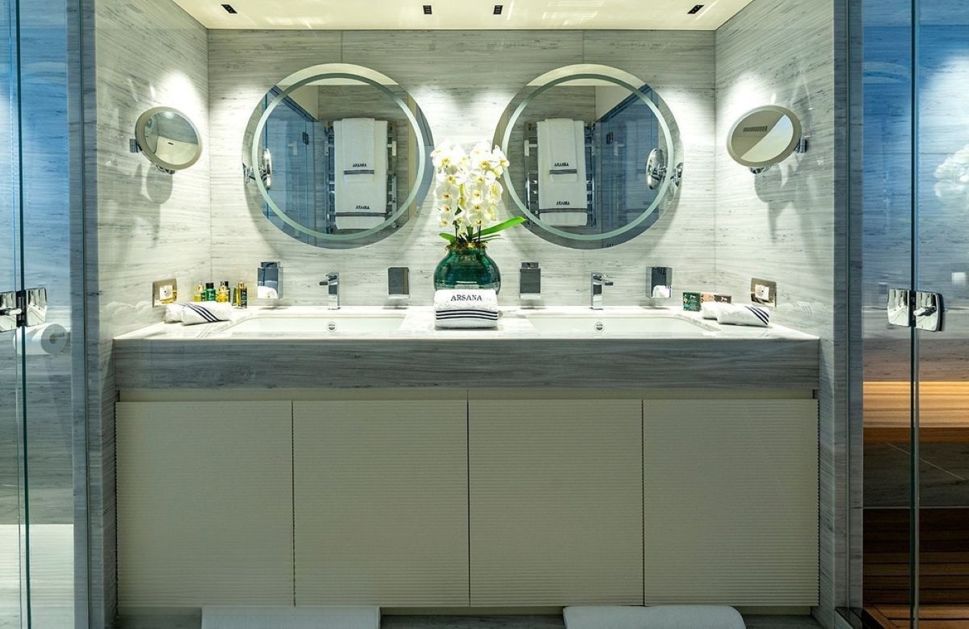 The luxury yacht ARSANA displayed on this page is merely informational and she is not necessarily available for yacht charter or for sale, nor is she represented or marketed in anyway by CharterWorld. This web page and the superyacht information contained herein is not contractual. All yacht specifications and informations are displayed in good faith but CharterWorld does not warrant or assume any legal liability or responsibility for the current accuracy, completeness, validity, or usefulness of any superyacht information and/or images displayed. All boat information is subject to change without prior notice and may not be current.