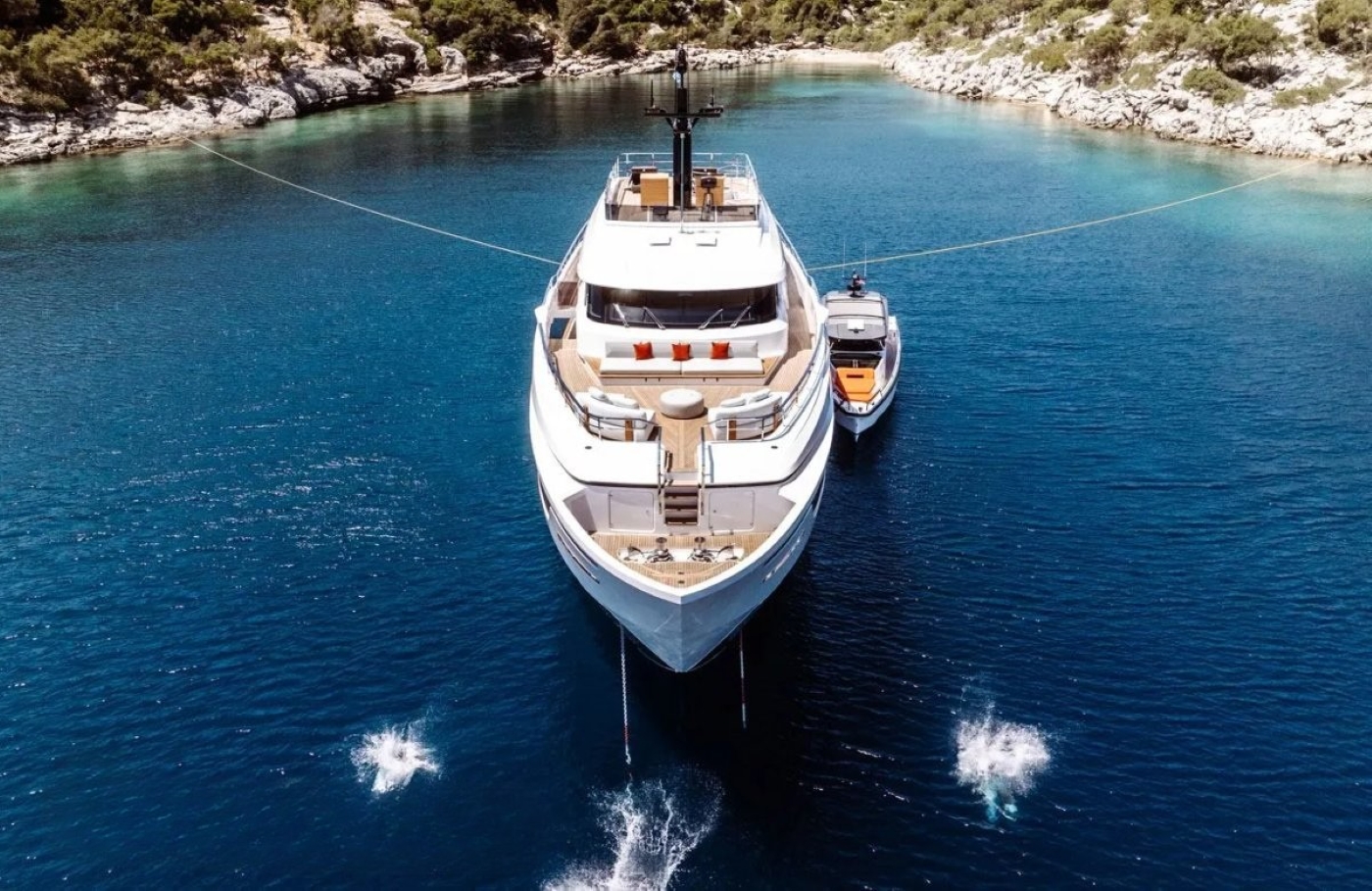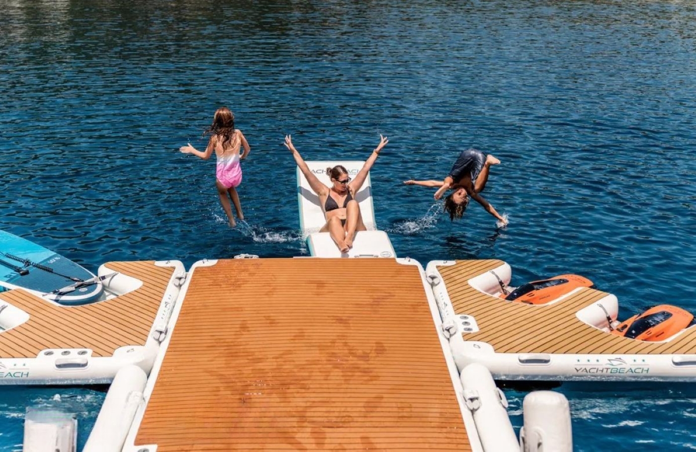~ Axopar chase boat 37XC 300 Mercury Verado outboard engines x 2, fuel consumption 70lph, night vision camera, independent Starlink, A/C ~ 1 x Tender 3.6m Highfield aluminium base 9.9 HP Yamaha outboard engine ~ 2 x Seabob FS5 ~ 2 x Paddle boards ~ Waterskis + wakeboard (upon request) ~ Towable Ski Bed (upon request) ~ Floating beach club ~ Yacht beach Sun Lounger 75 x 160 x 2 ~ Yacht beach Platform 4.10 Premium Teak ~ Yacht beach Multi Dock and Lounger 2m x 2 m x 20cm ~ Snorkeling equipment
