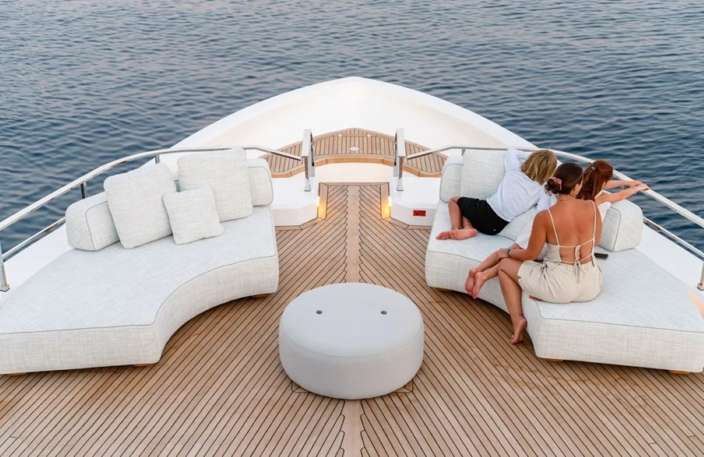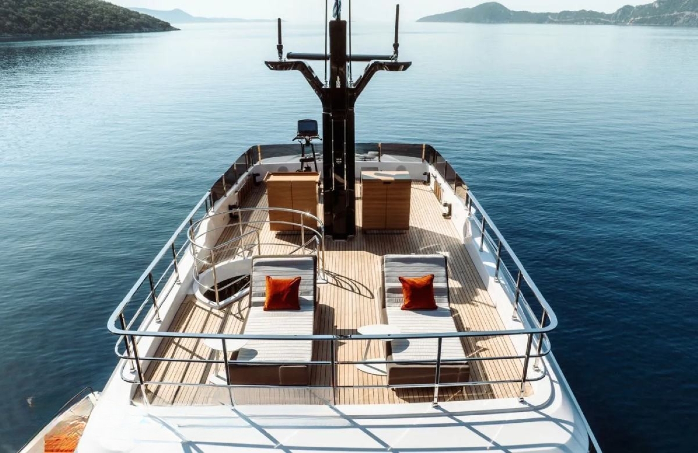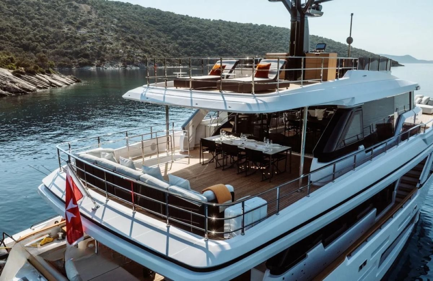 Motor yacht AT ONE is a 28.43m (93'2") Custom Line Navetta 30 from Ferretti Group Engineering, ACPV Architects and Custom Line Atelier launched in 2024. She features an ambitious volume with a timeless aesthetic and forward-thinking styling across her ambitious volume. She can accommodate up to 10 guests in five suites with three additional crew cabins for a crew of 6.