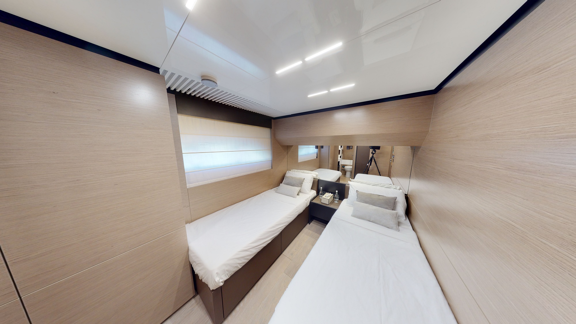 Four suites include a full beam master, forward VIP and two twin suites perfect for families or groups of friends. Each suite is well-appointed, light and welcoming and have the privacy of ensuite bathroom facilities.