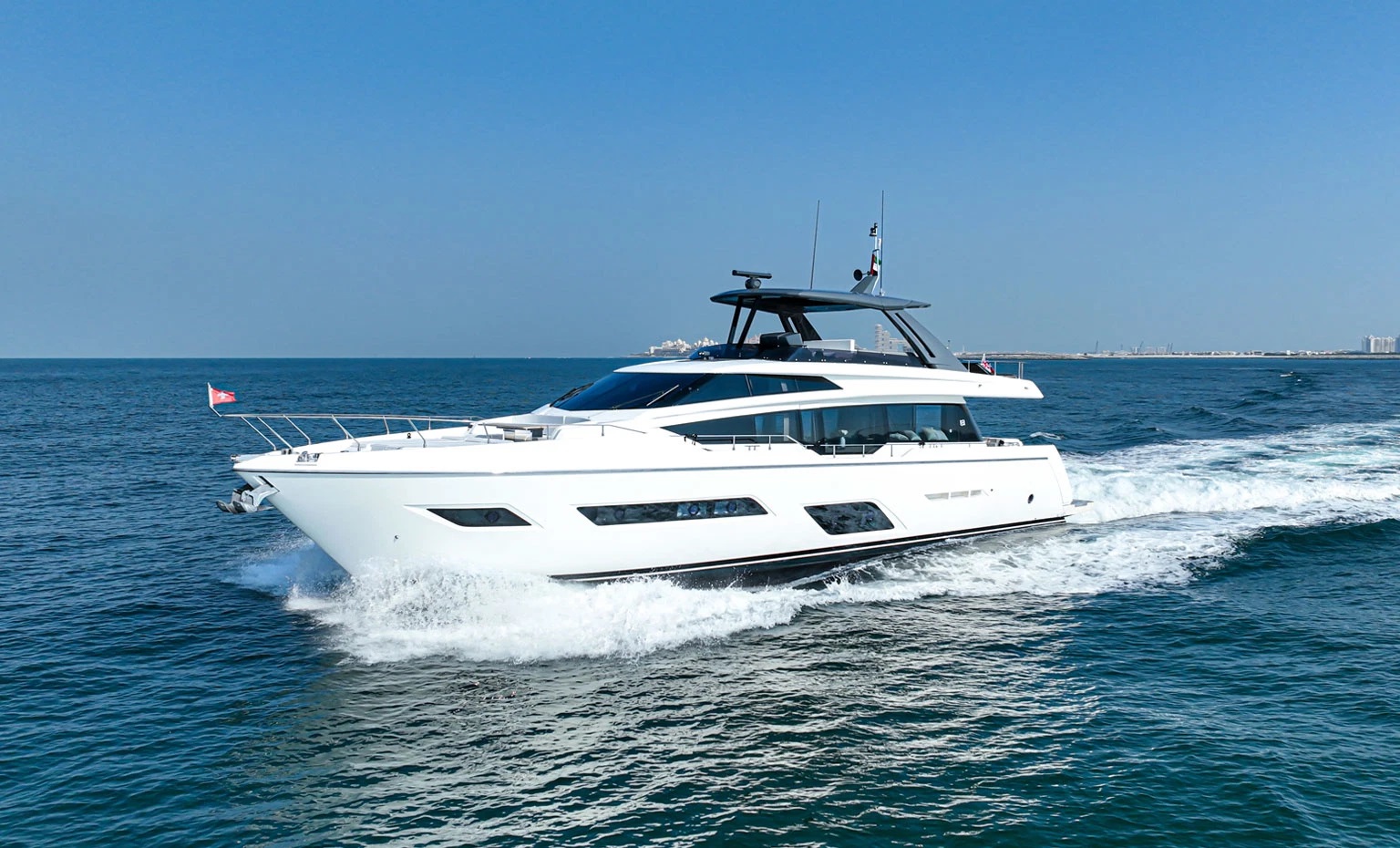 Motor yacht BELLA III is a 22.75m (74' 8") Ferretti flybridge yacht built in 2019 with a shallow draft - 1.76m (5' 9") - perfect for exploring near shore. With plenty of al fresco entertainment space, designer interior from Zuccon and four cabins, she can comfortably accommodate up to eight guests.