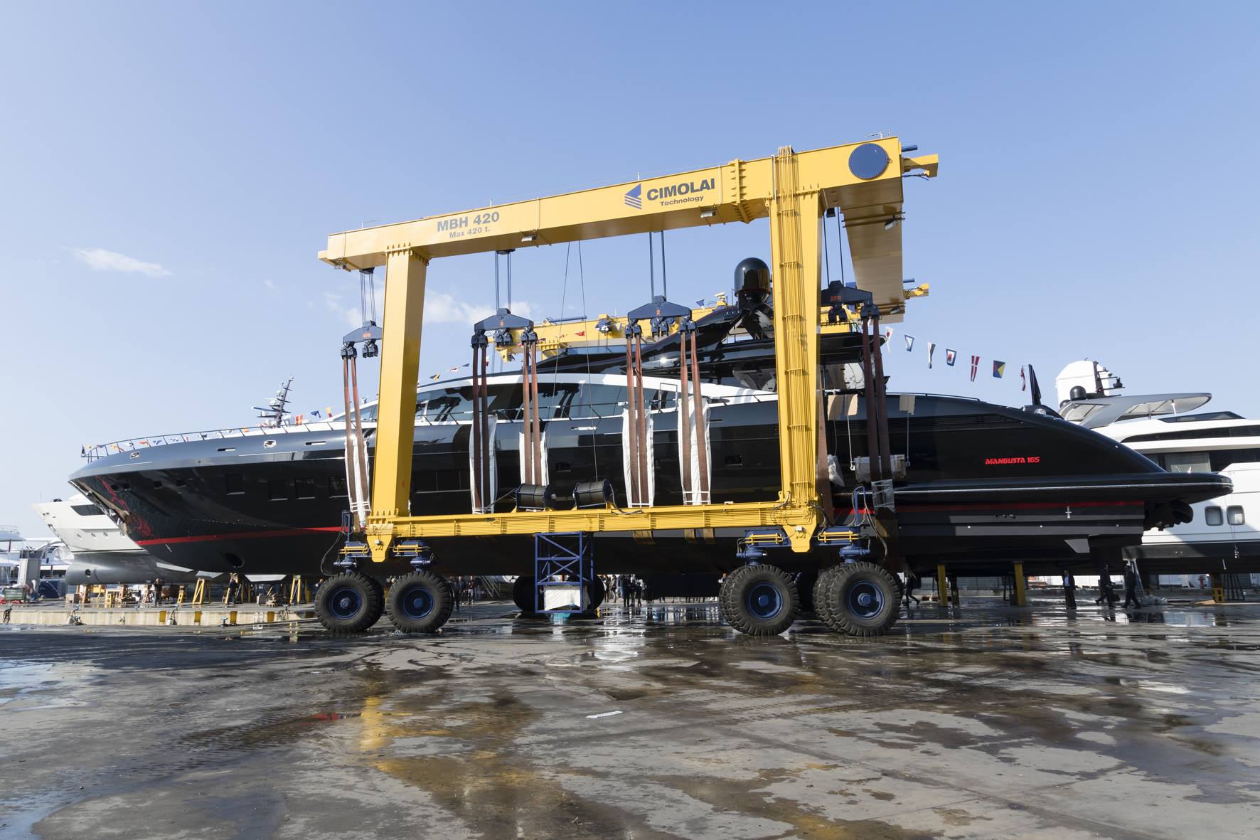 "From designing to construction of the mould and relative laminating in composite materials, to cutting of the metal sheets, to the final outfitting, including on-board electronics and on-board plant design, all processes are carried out by the Group. 100% made in Italy and absolute quality. The Group is based in Tuscany, Italy, with various production facilities in the areas of Viareggio, Massa and Pisa.: - Mangusta Yachts from Overmarine