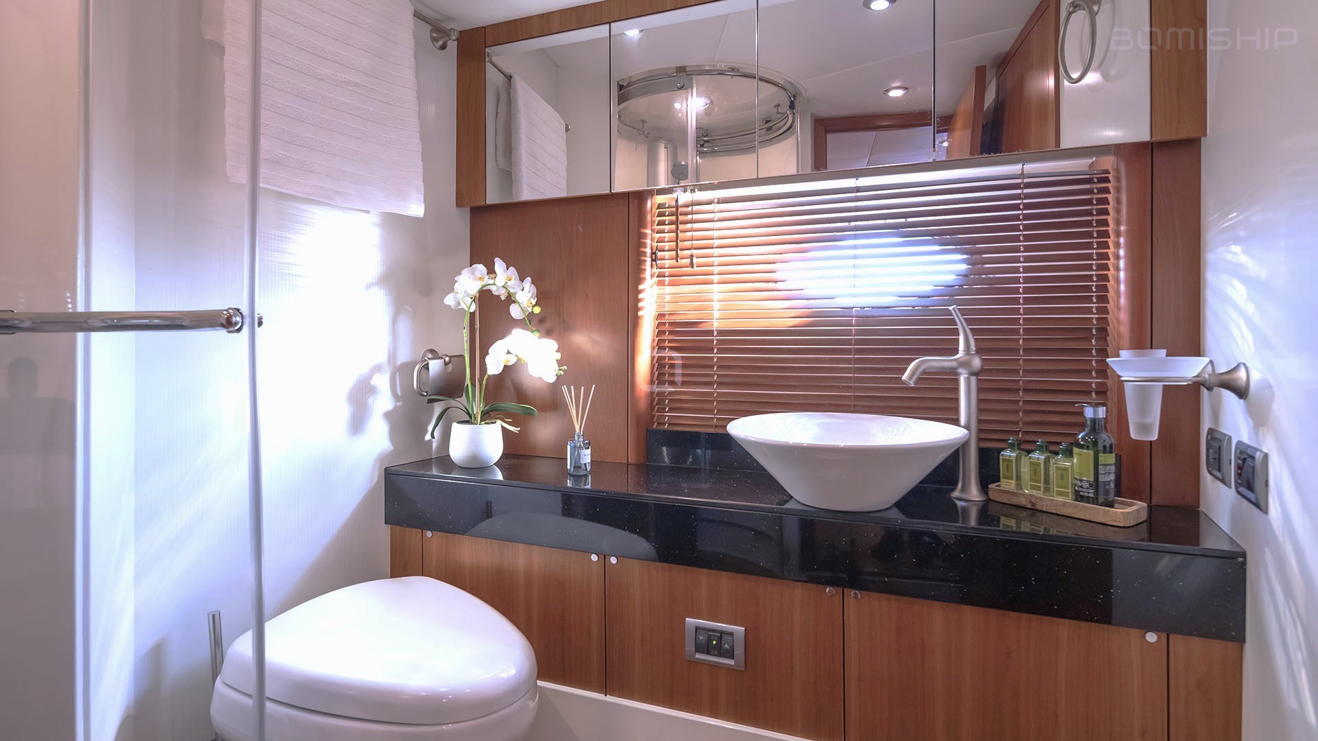 YACHT CHARTER ACCOMMODATION The guest accommodation aboard BOY TOY comprises: ~ Master cabin: Queen-sized bed, ensuite bathroom with shower, generous storage and natural light ~ VIP cabin: Queen-sized bed, ensuite bathroom with shower, wardrobe and desk area ~ Twin cabin: Two single beds, ensuite bathroom with shower ~ Bunk cabin: Upper and lower single bunks, ensuite bathroom with shower