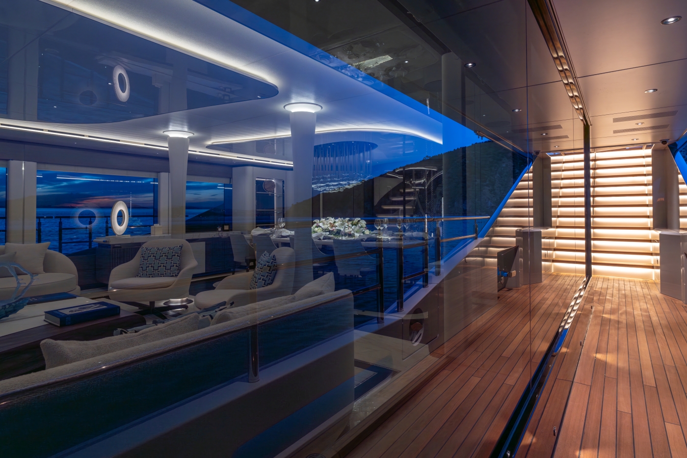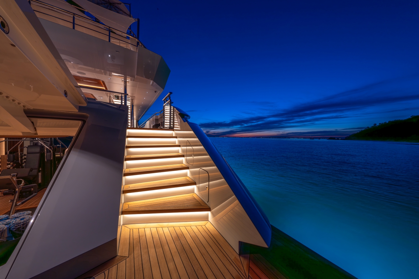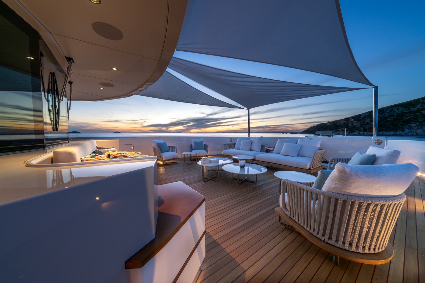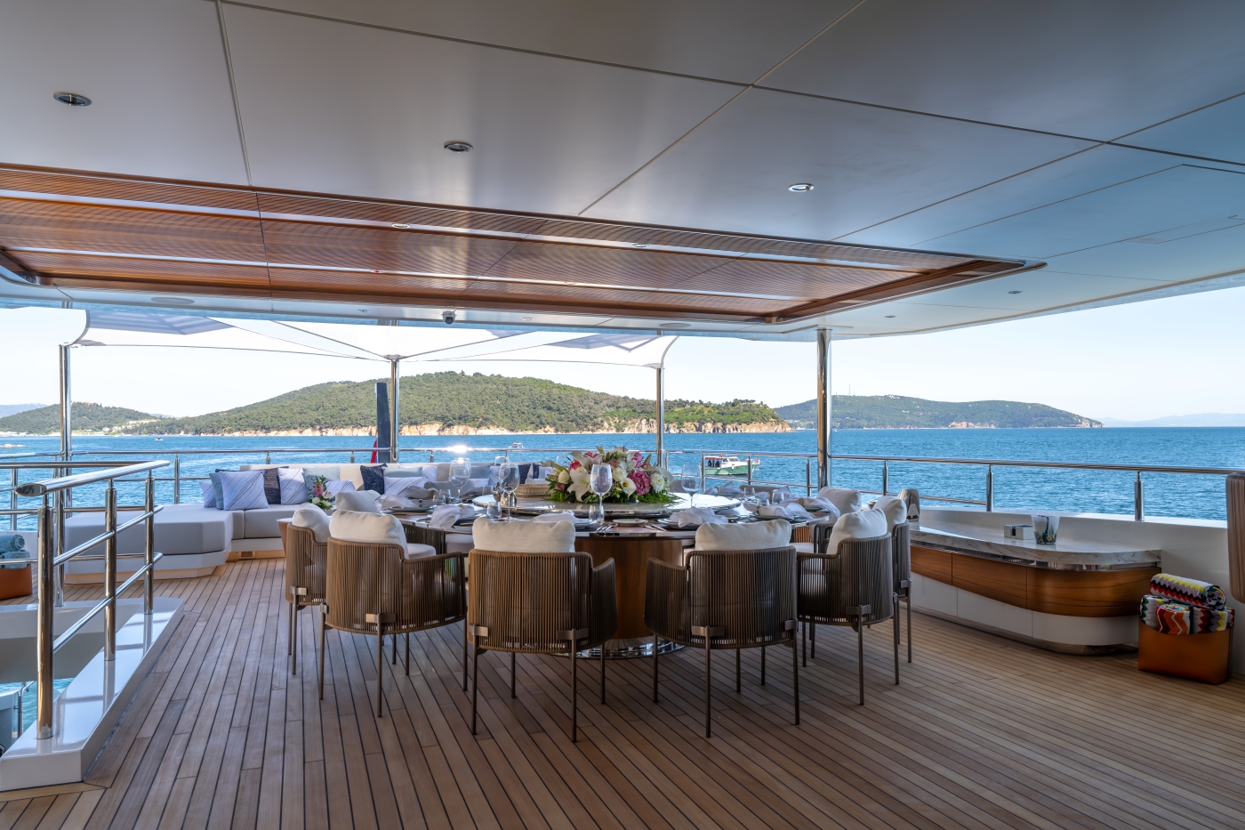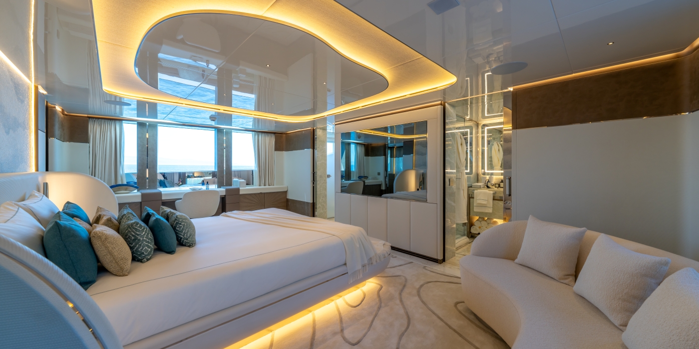 Interiors have been described as a beautiful, bespoke homage to the owner’s lifestyle and elegantly designed elements inside and outside make her a stunning yacht