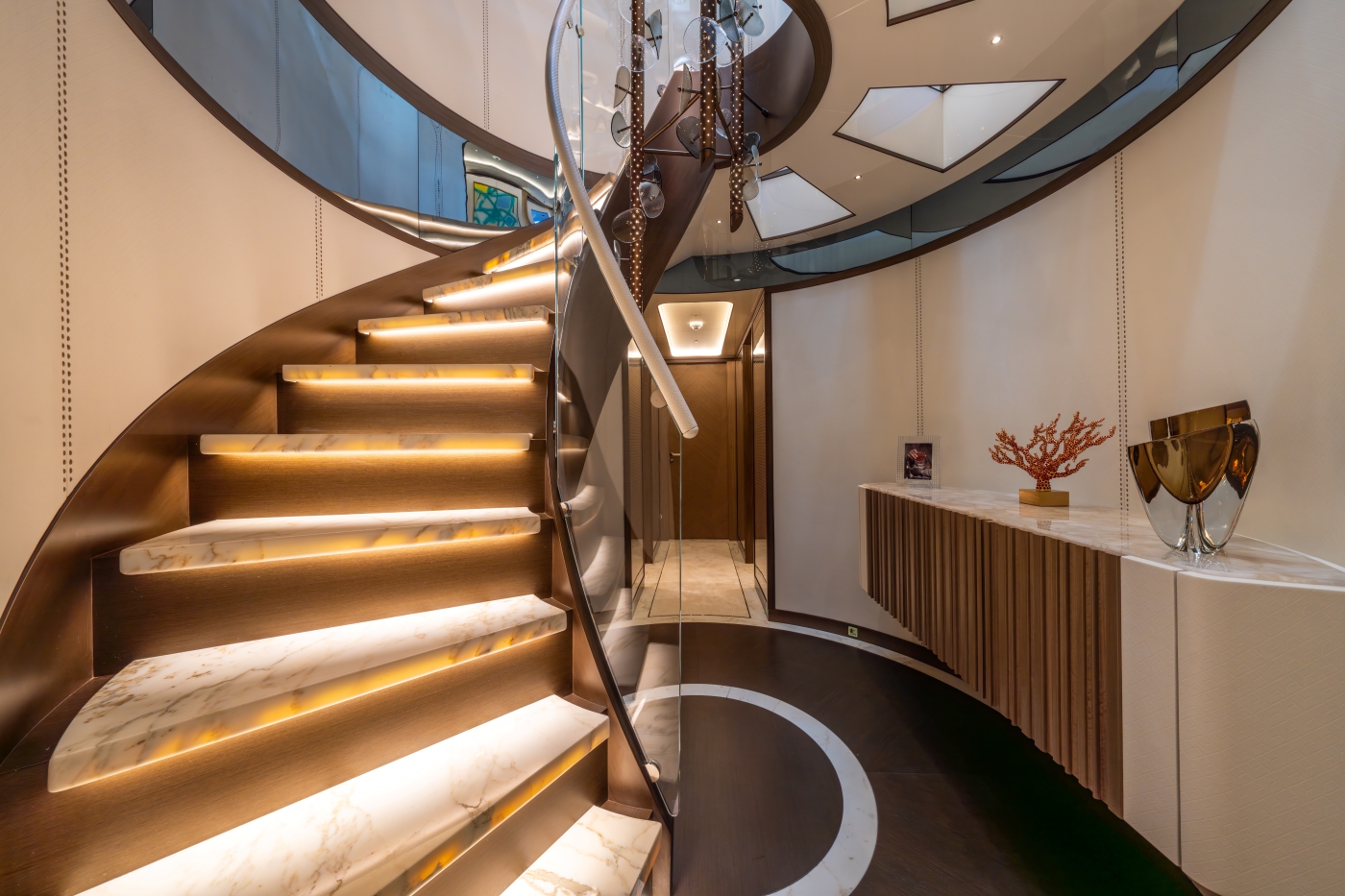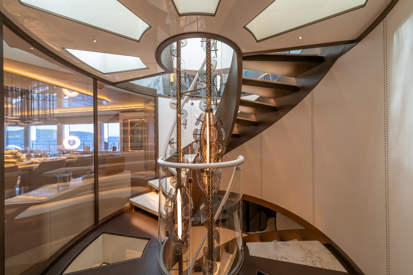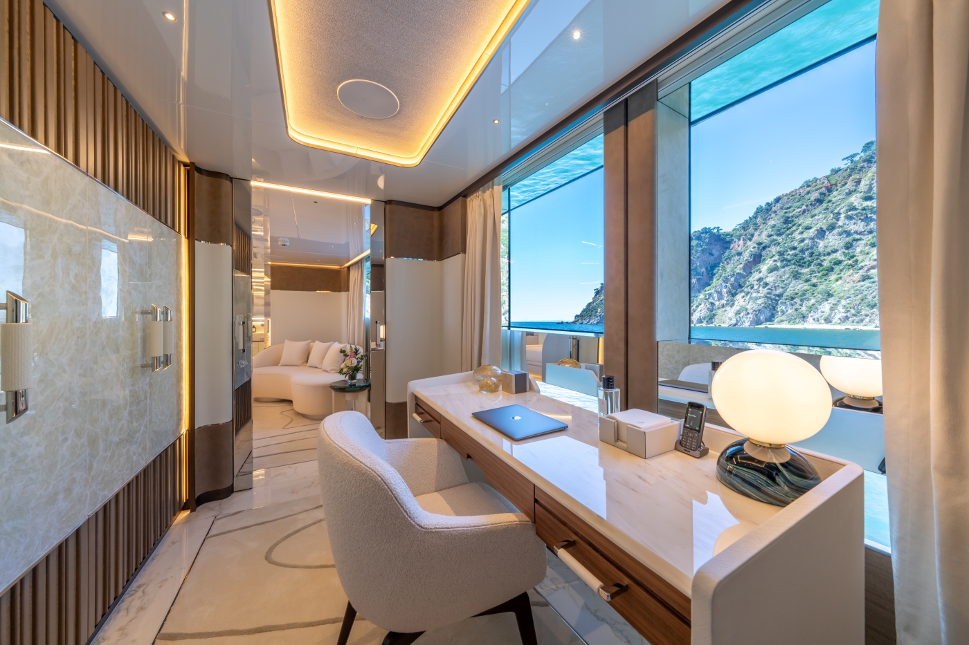 Inside, the renowned Hot Lab studio has curated interiors that exude modern sophistication. Her layout offers 20% more space compared to traditional 48-meter yachts, providing expansive areas for relaxation and entertainment.