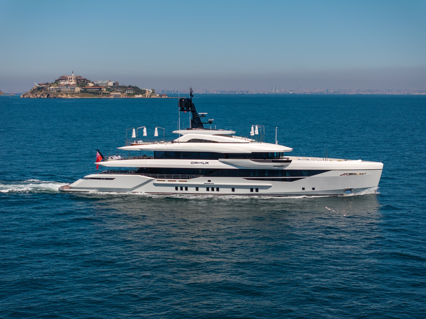 NOTABLE FEATURES OF CAMILA: ~499GT volume ~Unique Yacht Design exterior ~Hot Lab interiors ~5,000 nm range at 12 knot cruising speed ~Air conditioning ~WiFi