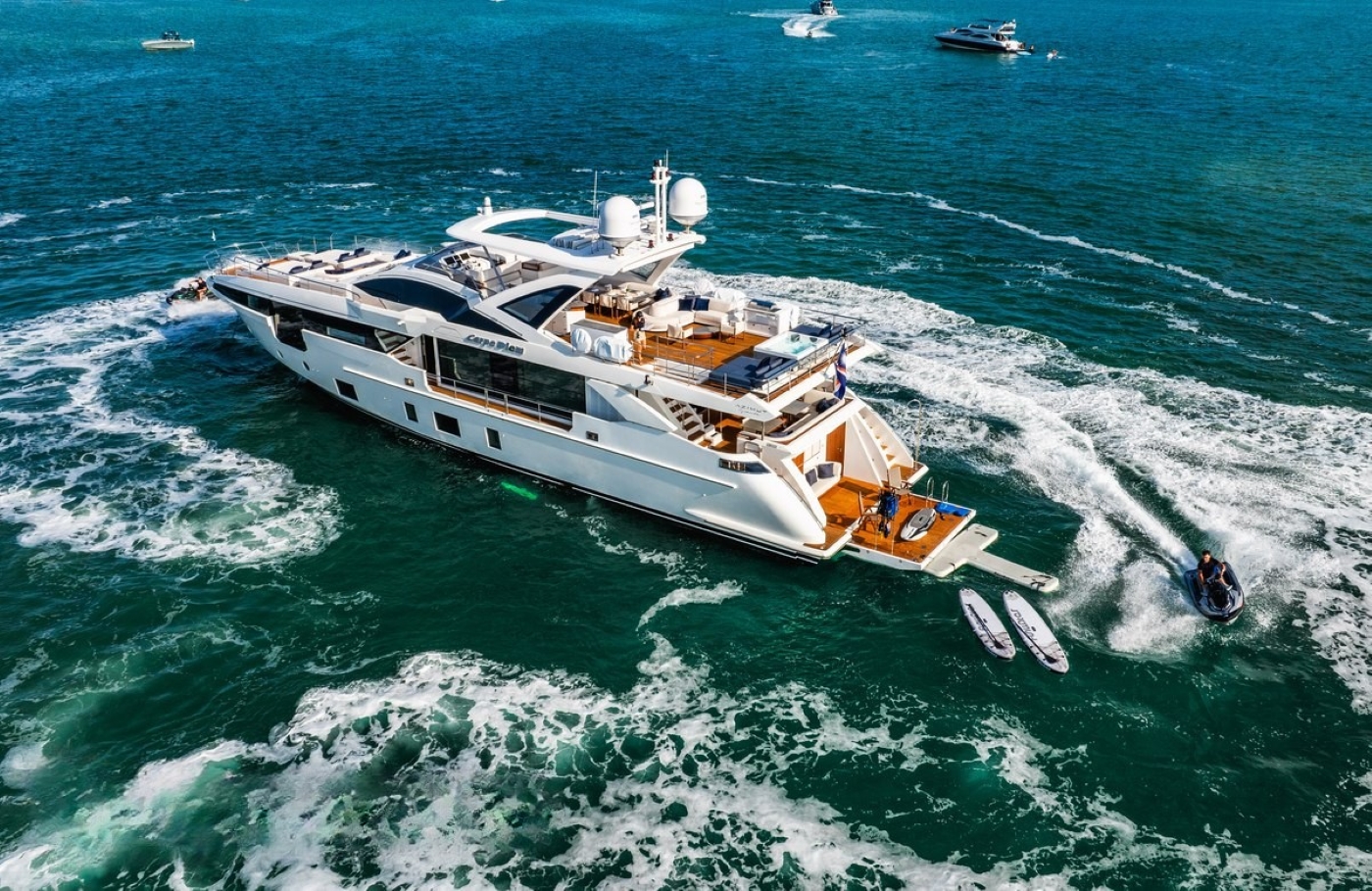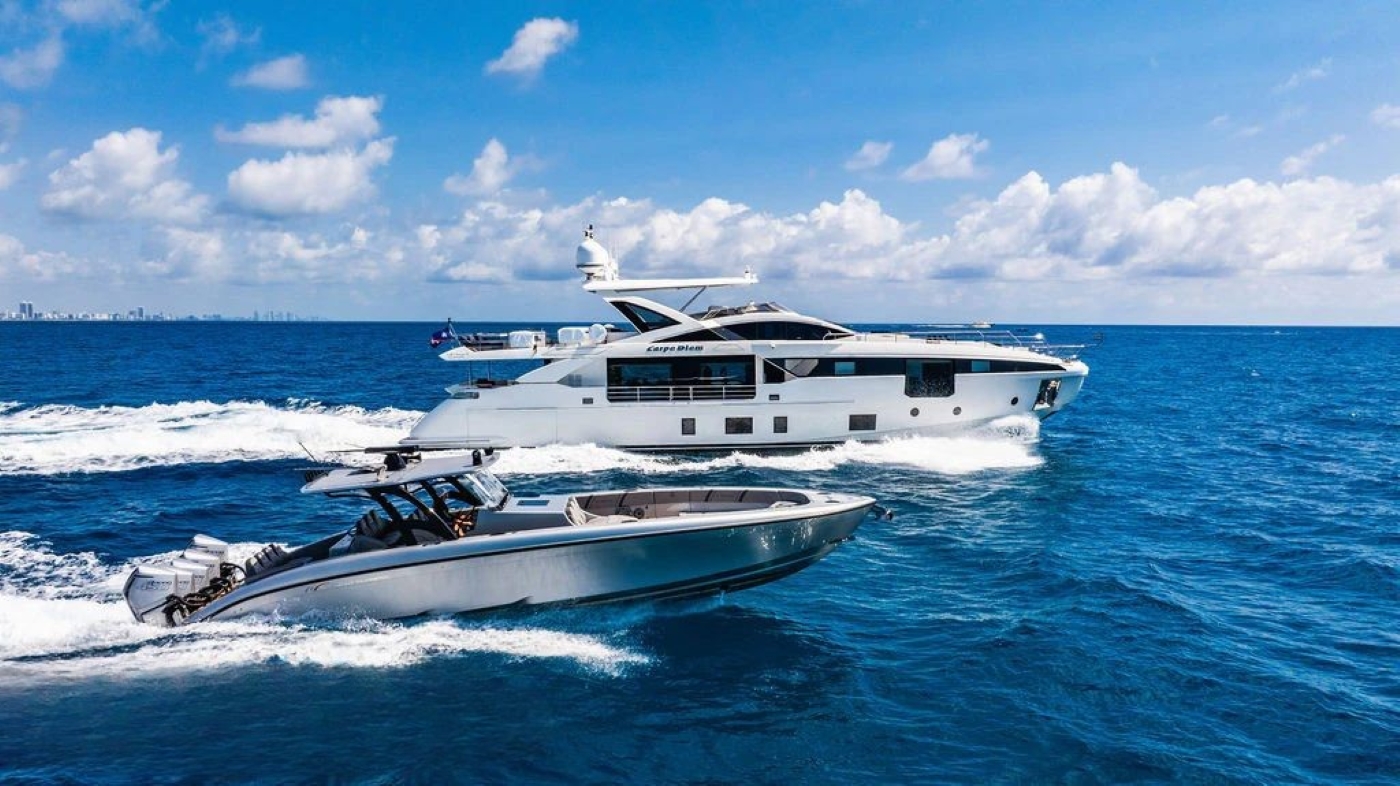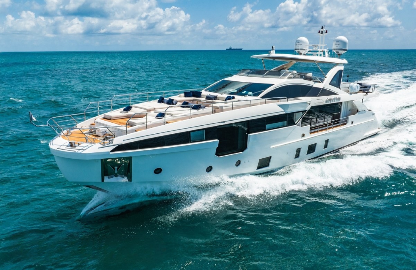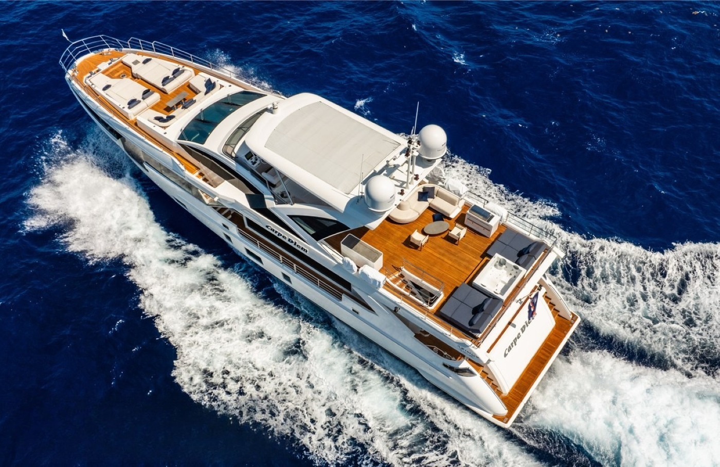 Luxury Azimut motor yacht CARPE DIEM was built in 2023 with a length of 31.27 m (102' 7") and beam of 7.32 m (24'). She boasts an exciting profile and is packed with fabulous charter features, plus travels with a 43’ chase boat – a perfect tender for shore trips and water sports. Accommodation is for up to nine guests in four suites with an onboard crew of four.