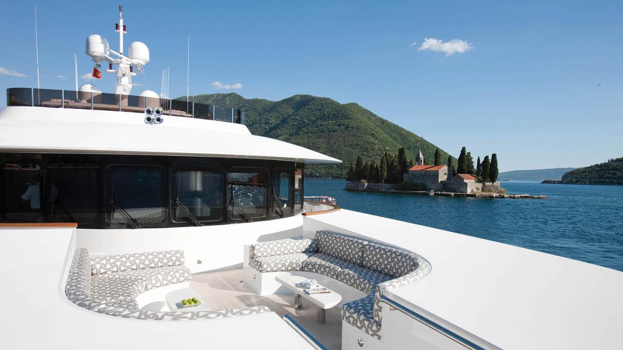 NOTABLE FEATURES: ~ King suite convertible into two rooms ~ Wine cellar ~ Four bars ~ Contemporary interior embellished with lavish materials ~ Plenty of room for sunbathing ~ Jacuzzi ~ Formal and alfresco dining options ~ Water toys & tenders ~ Stabilizers at anchor and underway ~ Experienced professional charter crew