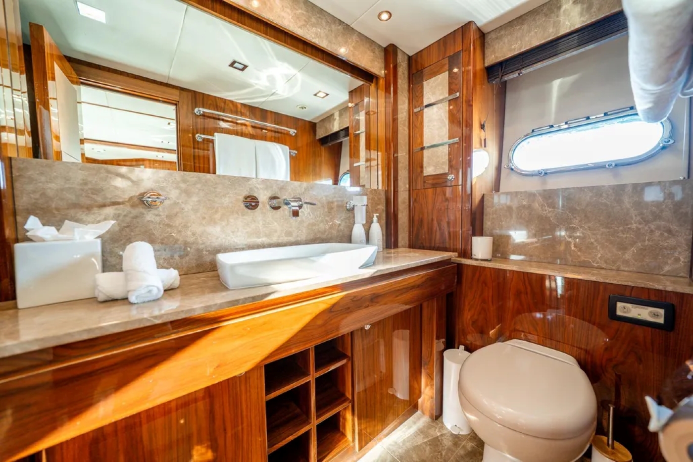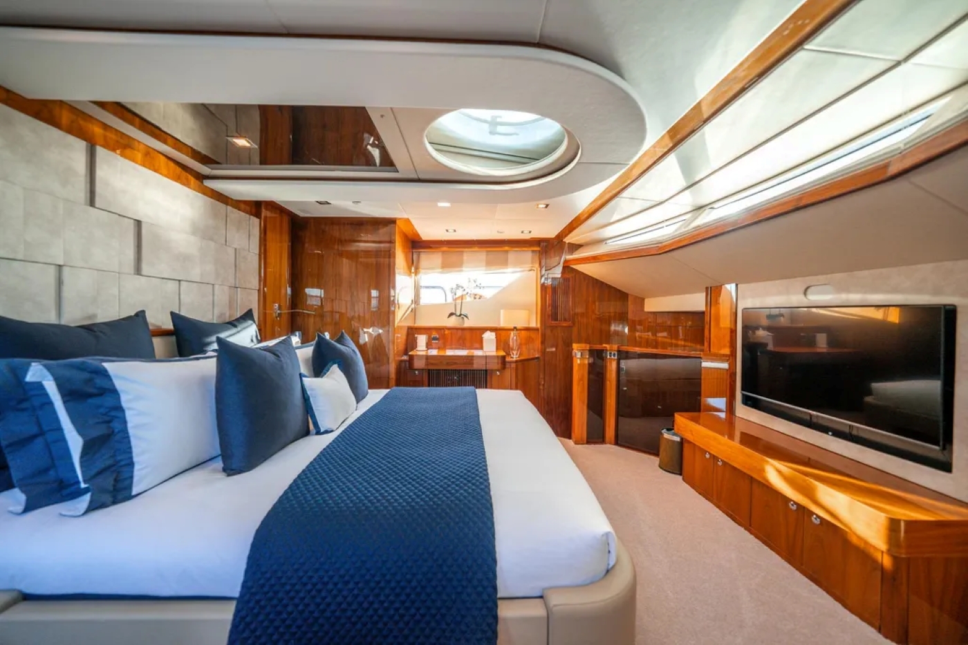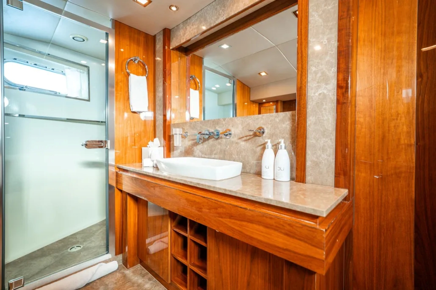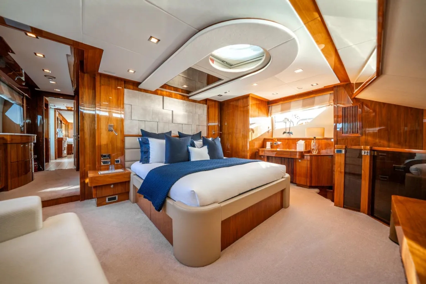 Forward on the main deck finds the master suite while the additional suites are on the lower deck.