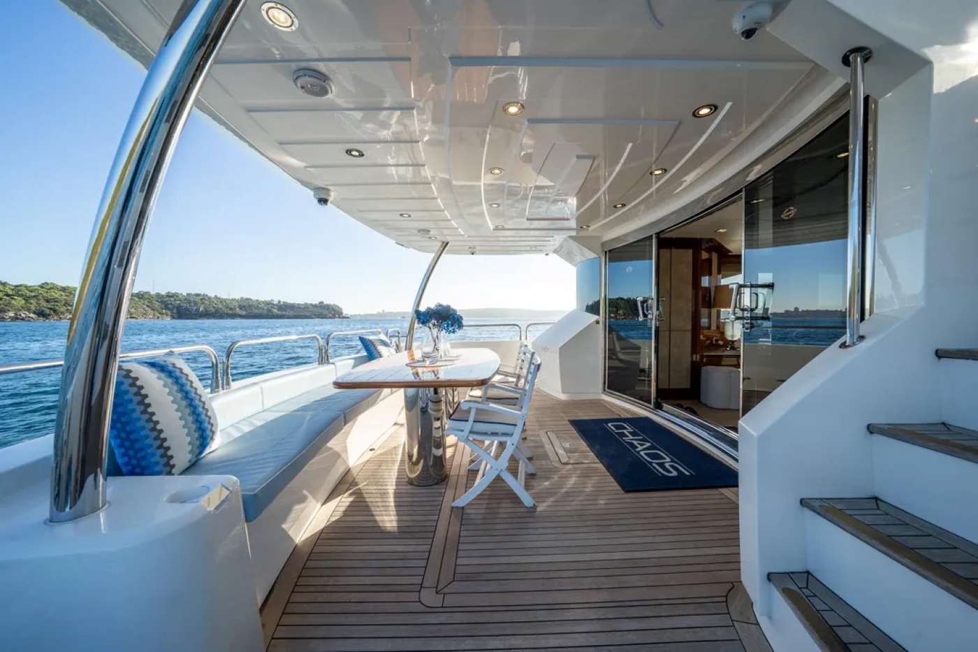 NOTABLE FEATURES OF CHAOS: ~Generous flybridge ~Light modern interior ~Large swim platform ~Main deck master ~Air conditioning ~WiFi