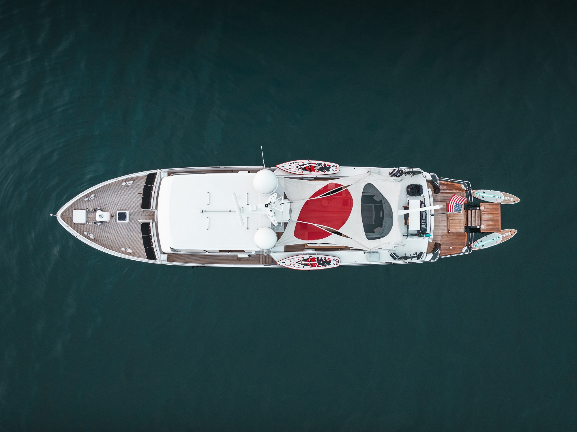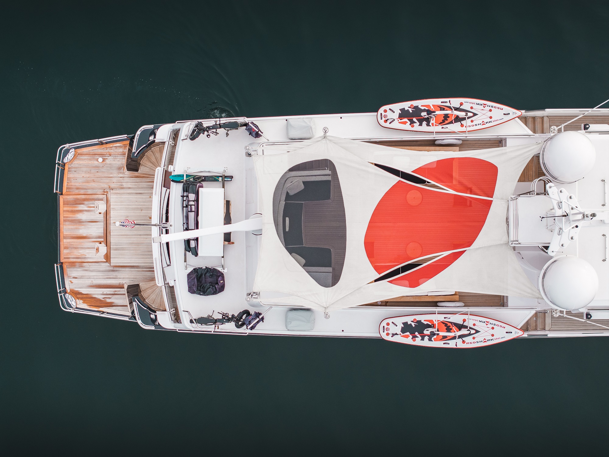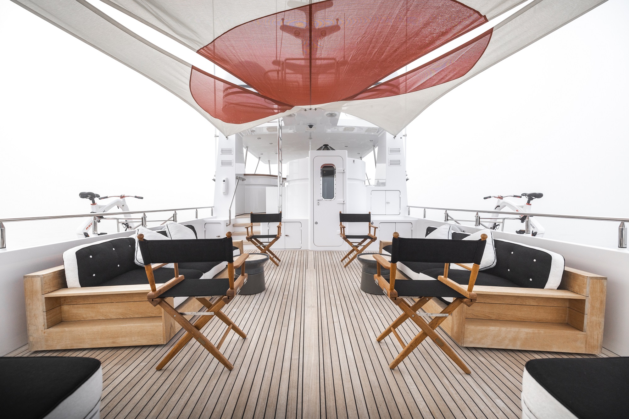 The accommodation sleeps a maximum of 6 guests over 3 en-suite cabins: 1 Master suite and 2 further guest cabins, all located on the lower deck. The wow factor is saved for the master bedroom, which is colour matched to the owner’s 1952 Porsche 356A bumper. The expert crew of 4 will ensure that every guest receives first-class service throughout their time on board.