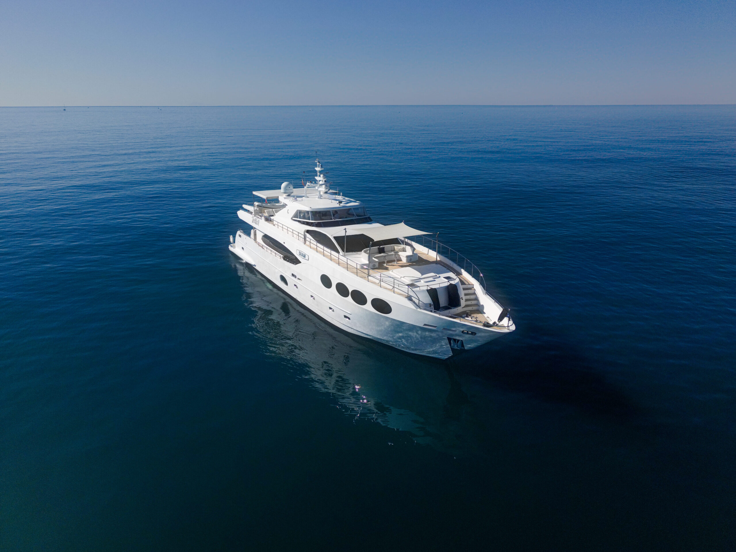 NOTABLE FEATURES OF DIAM: ~ Full beam master suite for exceptional space and comfort ~ Sun deck jacuzzi and multiple sun lounging zones ~ At anchor stabilisers ensure steady comfort ~ Hydraulic swim platform ideal for seamless sea access ~ Williams Jet Tender for effortless boarding ~ Wakeboard, paddleboards and inflatable toys onboard