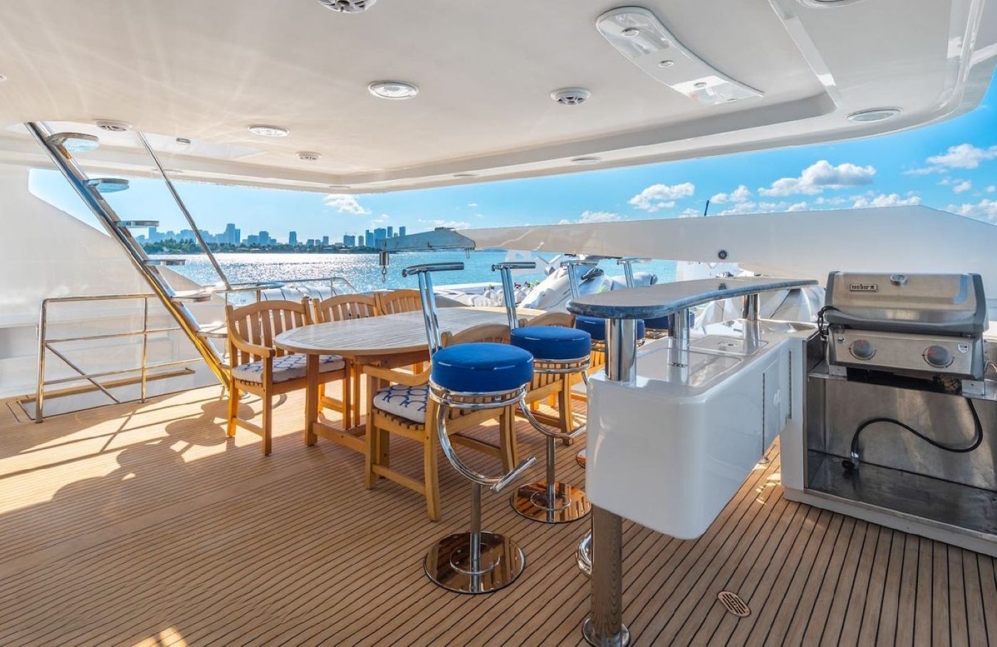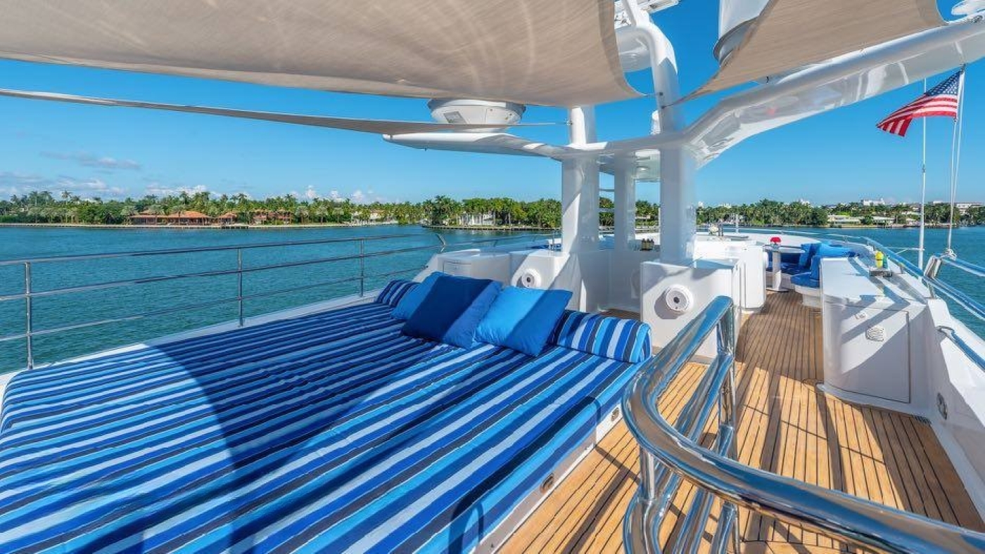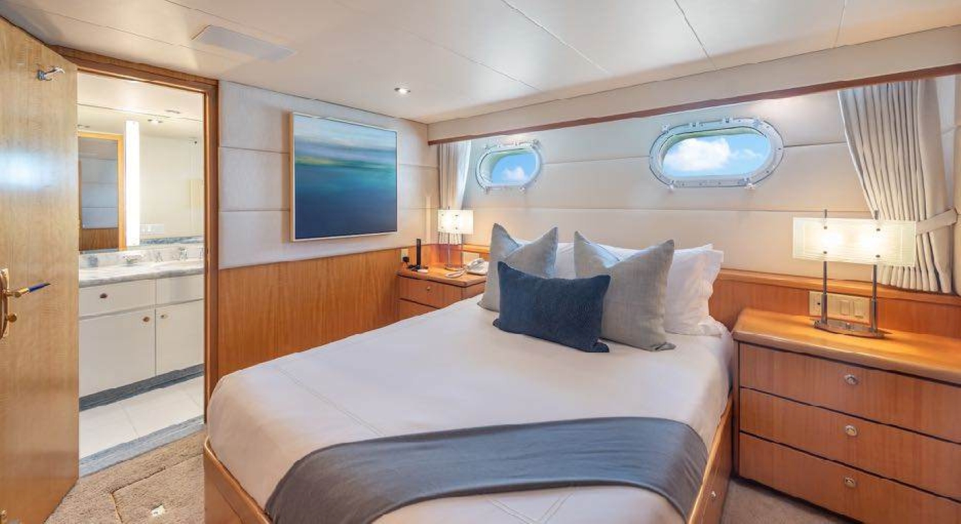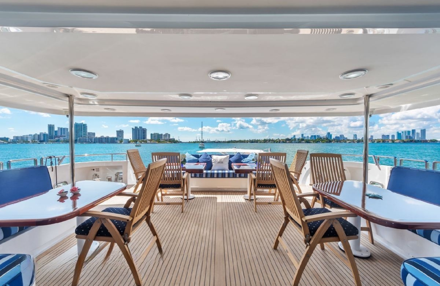 The bridge deck aft provides a place to dine alfresco sheltered from the sun with bar facilities for refreshments throughout the occasion. The Portuguese deck in front of the helm station provides even more sunpads and uninterrupted views of the surroundings.