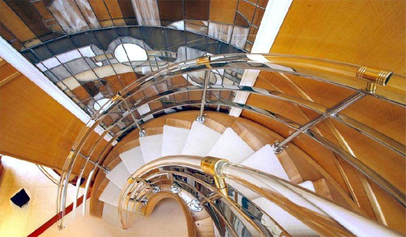 The sundeck above has sunbeds aft, a Jacuzzi forward of the mast and seating following the curve of the forward edge, with drinks tables for light meals and refreshments in the sunshine.