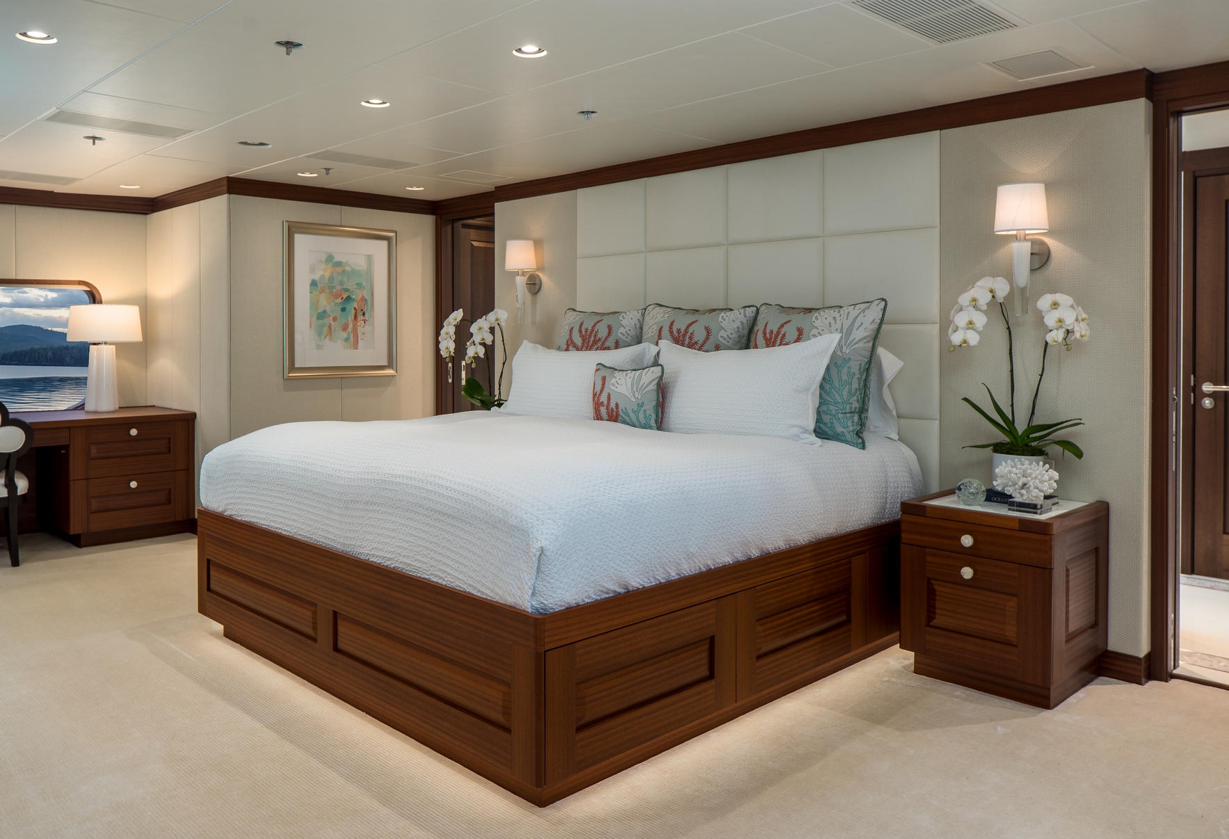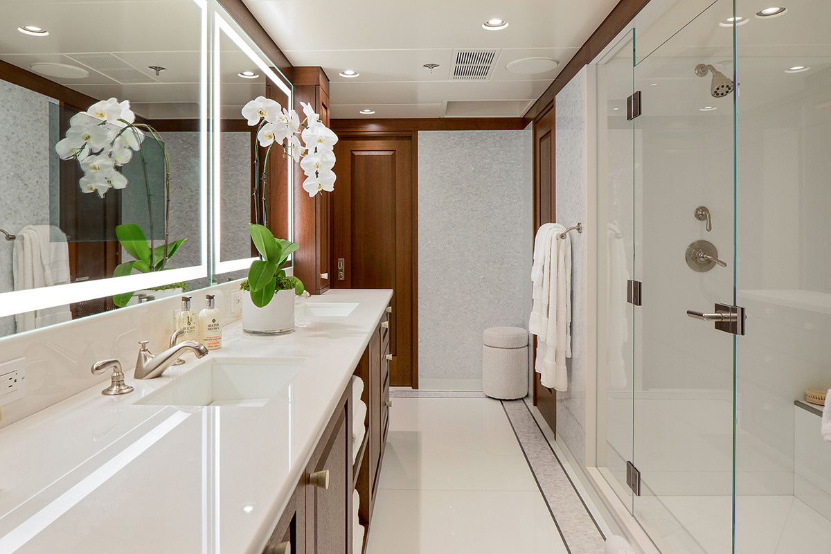 The generous accommodation sleeps up to 12 guests across 6 cabins. These comprise of 1 master suite. 4 VIP staterooms as well as 1 double cabin with 1 Pullman berth. All rooms are tastefully decorated and furnished to the very highest of standards. There is also ample accommodation available for 10 crew members.