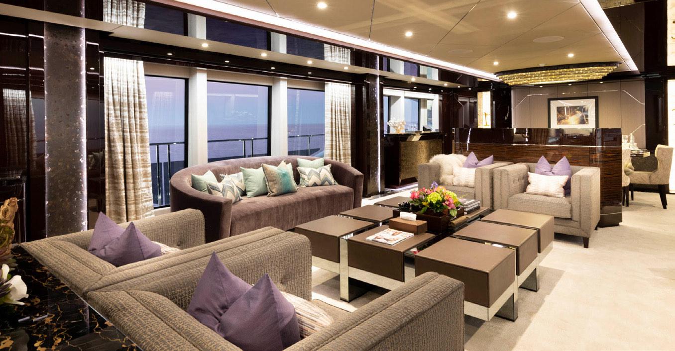 The broad swim platform allows guests to spread out with the water toys or sunbathe beside the water. The main deck aft offers a relaxing outdoor lounge consisting of a circular sofa/sunbed and two aft-facing sofas with a drinks table in the centre.