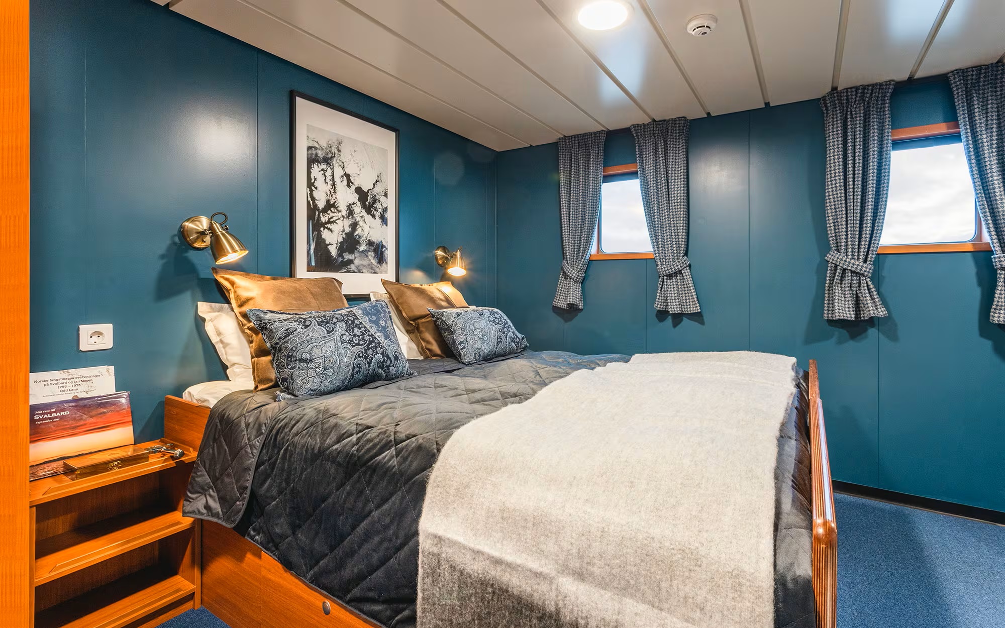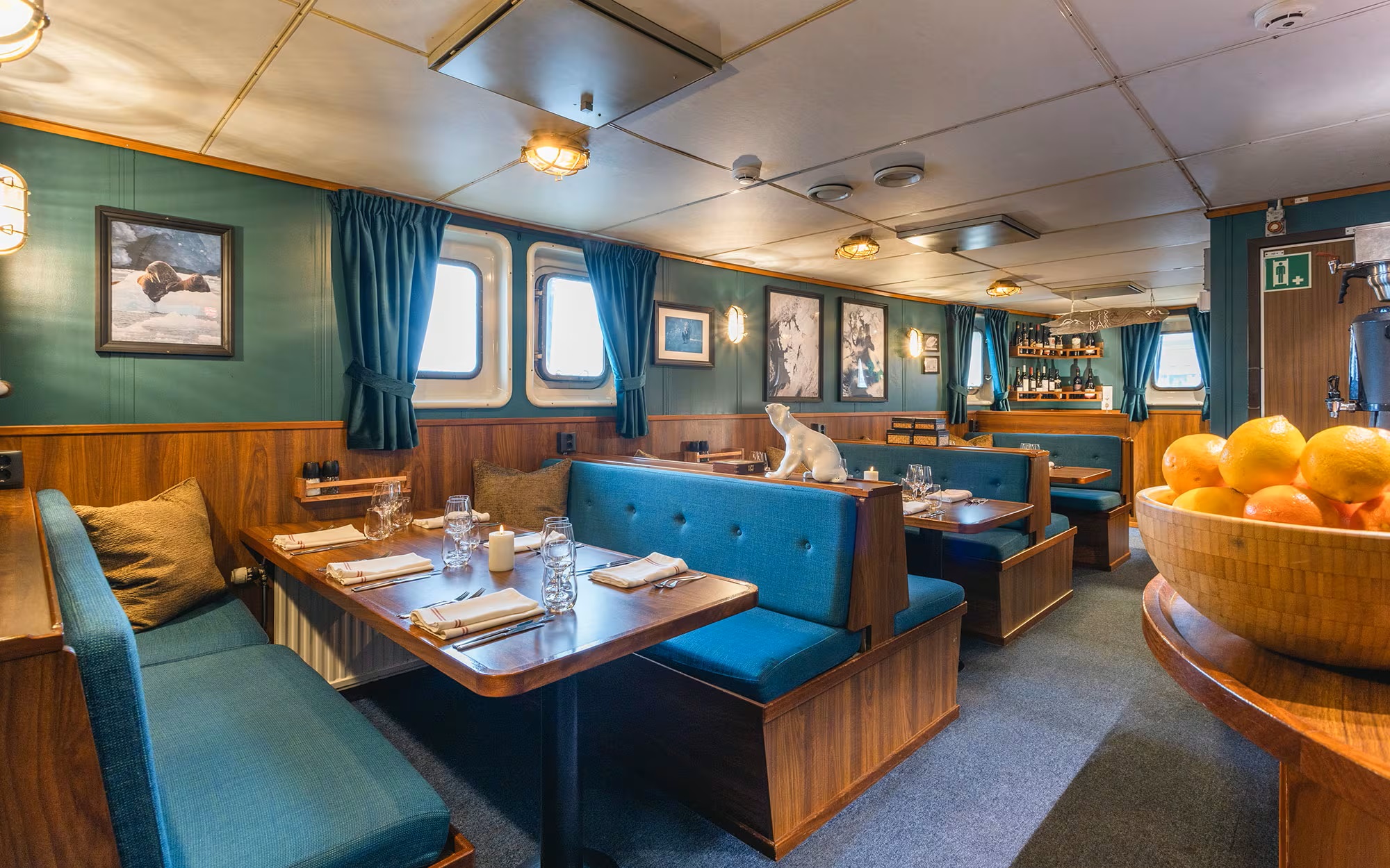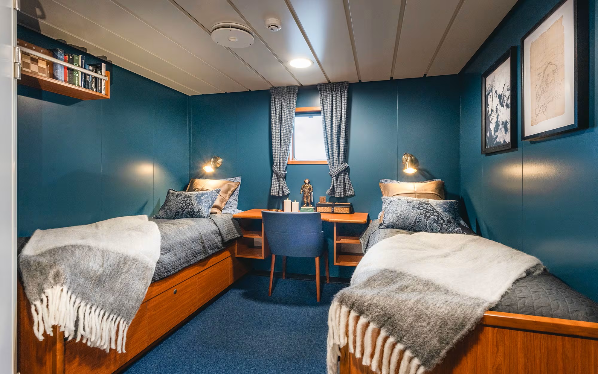 The cosy cabins are a mix of double and twins, all with ensuite bathroom facilities. Comfortable berths and warm bedding create cosy havens for guests to get a good night sleep after an active day.