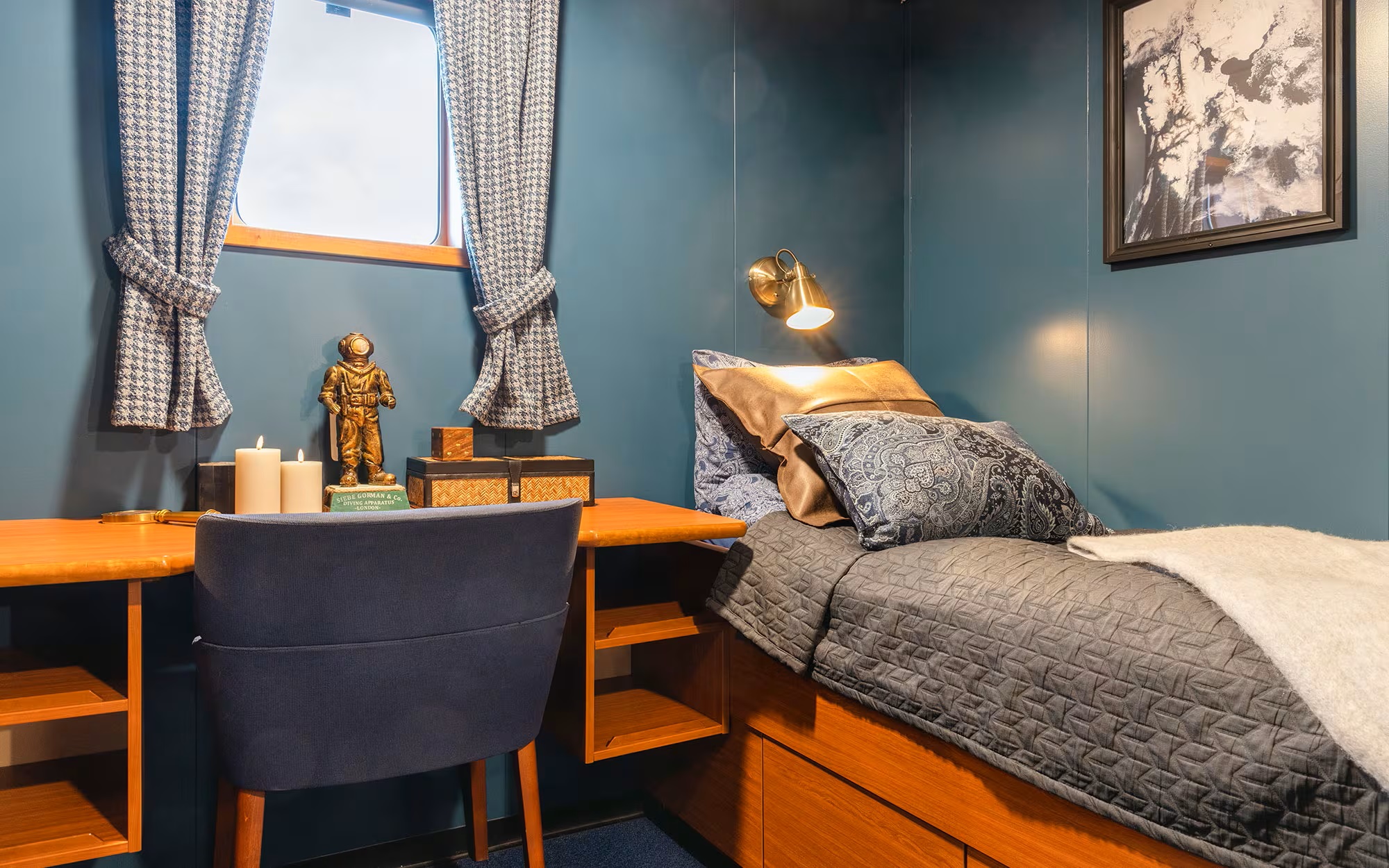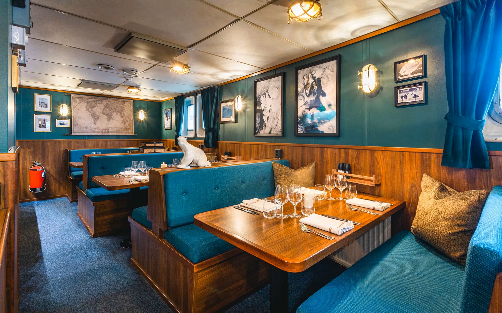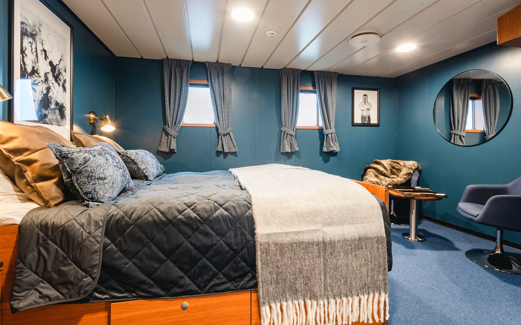 The cosy cabins are a mix of double and twins, all with ensuite bathroom facilities. Comfortable berths and warm bedding create cosy havens for guests to get a good night sleep after an active day.