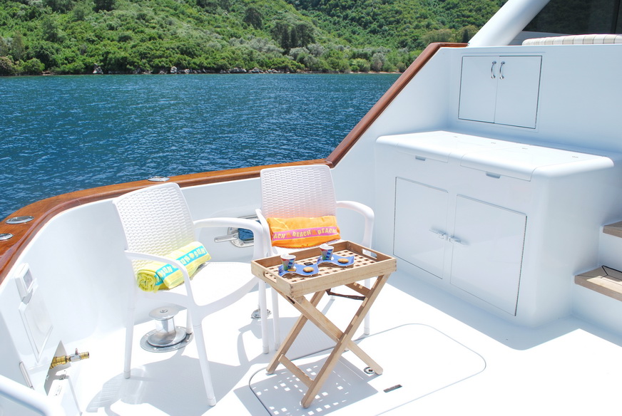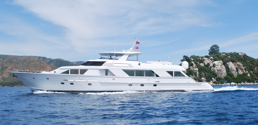 Luxury motor yacht GILAINE O was built by the Hatteras Yachts Shipyard in 1992, she measures 34.4m (112ft) and offers deluxe charters in the East Mediterranean. M/Y GILAINE O can accommodate up to 8 charter guests, in 4 en-suite cabins. Crewed charter yacht GILAINE O received an extensive refit in 2007 and is the perfect yacht for families and friends, who wish to explore the idyllic Greek and Turkish waters in style.