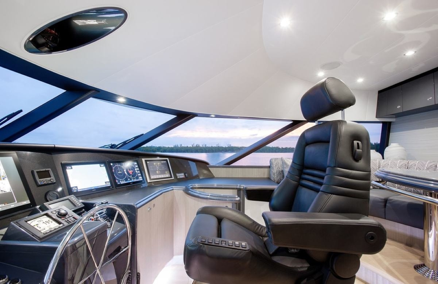 The raised pilothouse offers another place for guests to lounge, with comfortable seating and an abundance of windows to let the light stream through into the air-conditioned surroundings. A set of steps leads up to the flybridge for easy access to the alfresco facilities.