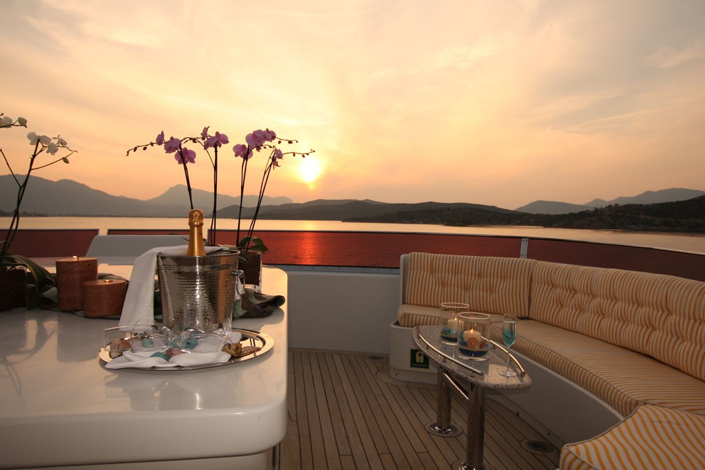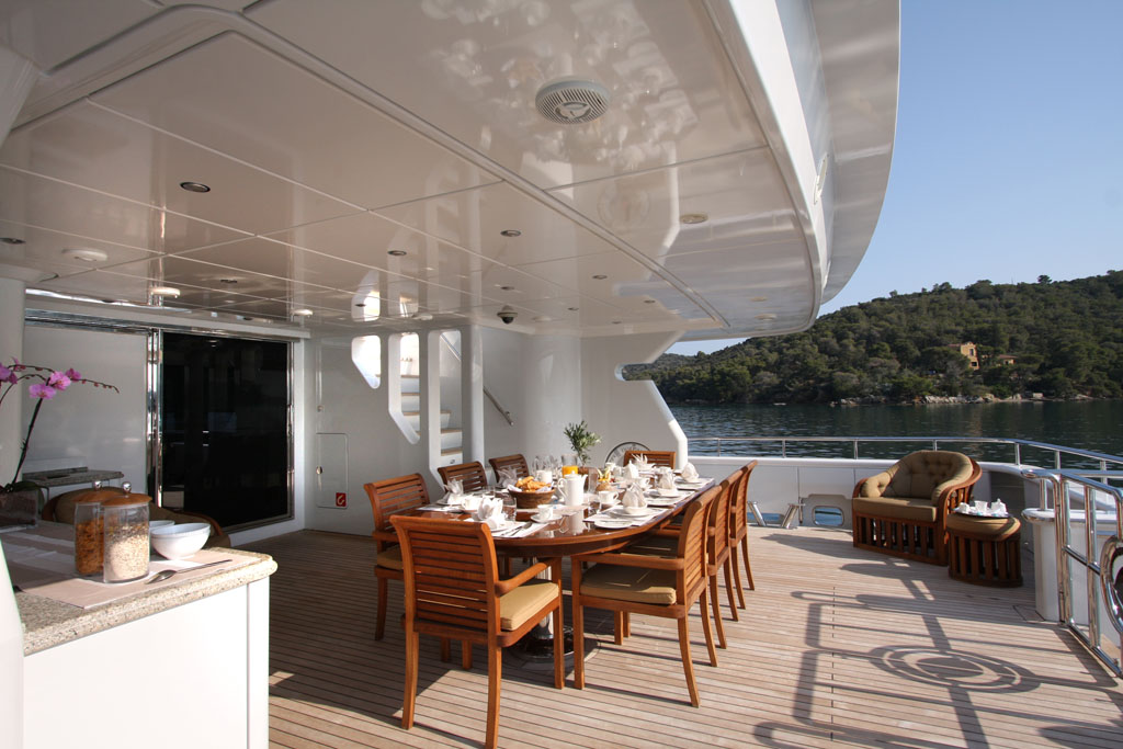 Further up, the sun deck has a large sitting area, mini bar, HIFI Audio System and barbeque (BBQ), and fantastic panoramic views.