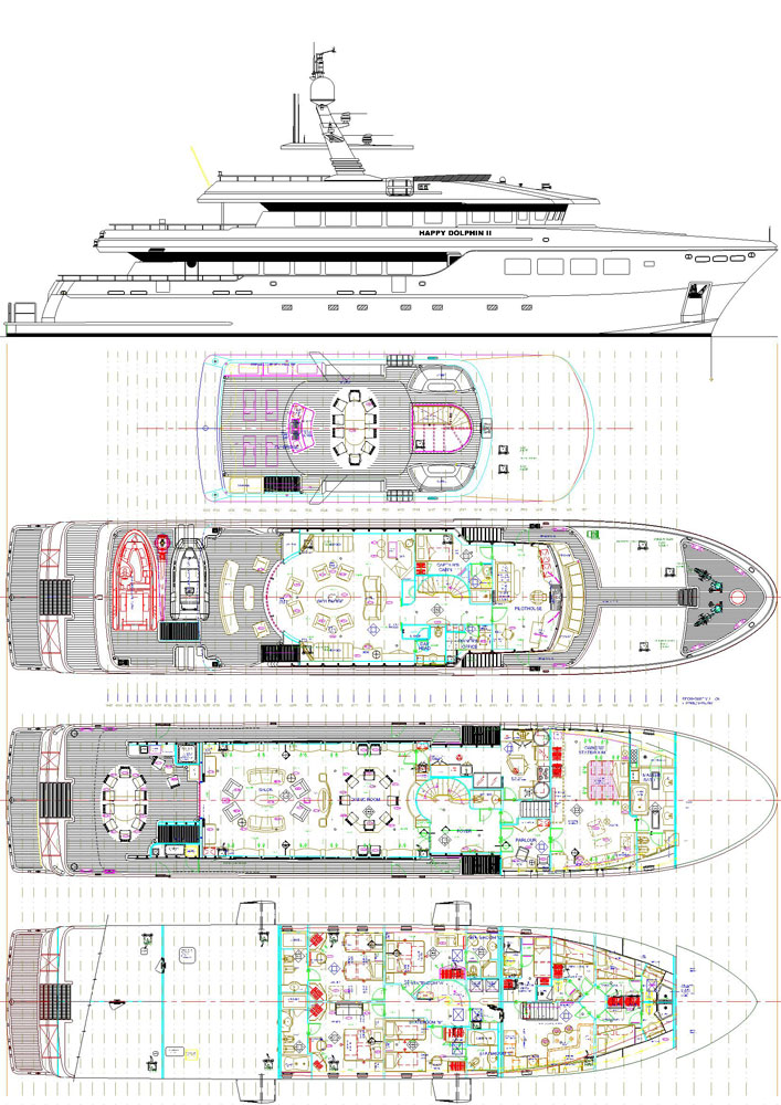 In 2006 she underwent a major refit in Holland at the Hakvoort Shipyard. Following her exterior refit, in 2008 “Happy Dolphin II” also had major changes to her interior design and decoration. She is a yacht which speaks for herself, with adequate and elegant style and design.