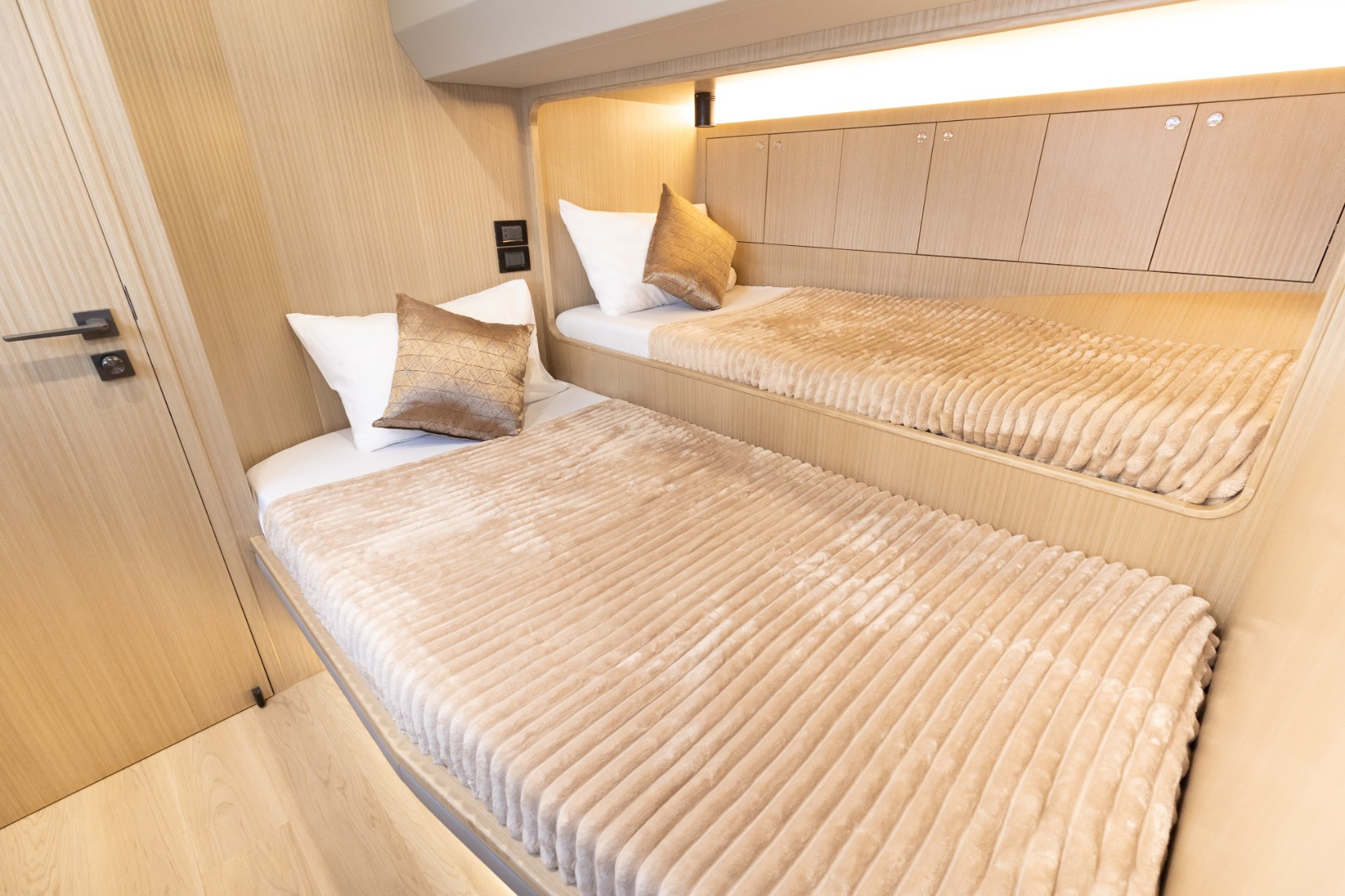 On the main deck aft and foredeck there are further seating and dining settings which all allow guests to make the most of the surroundings.